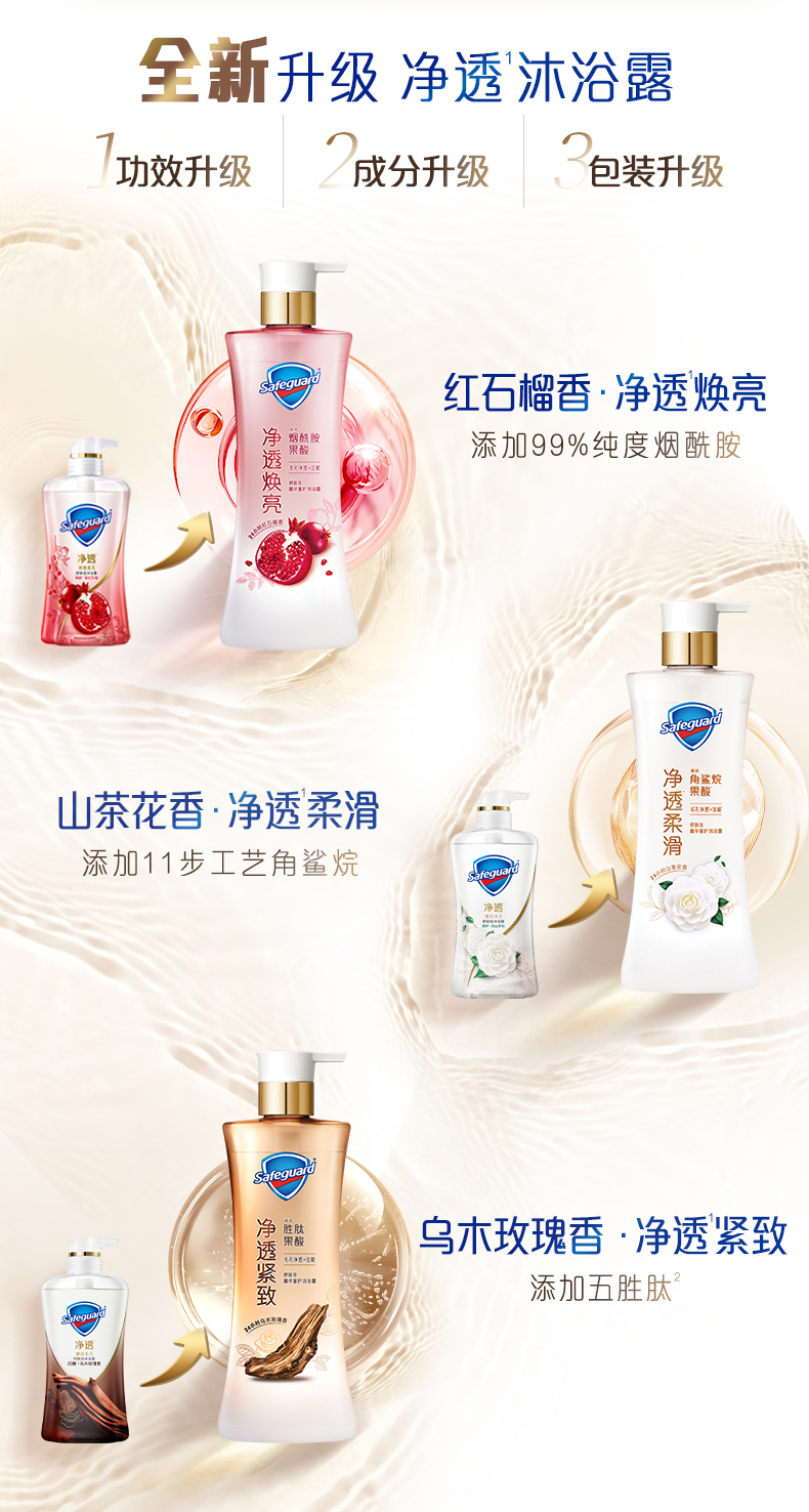 自从使用了舒肤佳全新升级的精华奢护沐浴露,我的沐浴体验真的上了一个新台阶!这次我选择的是【红乌双支+袋装】的组合,380g的红石榴与乌木玫瑰香味沐浴露,外加两袋200g的便携装,简直是家庭与旅行两不误的完美搭配。 首先说说香味,红石榴的清新与乌木玫瑰的馥郁交织在一起,不仅洗澡时享受到了高级香氛的包围,而且真的做到了24小时留香,第二天起来还能隐约闻到淡淡的香气,让人心情愉悦。这种持久而不腻的香味,是我之前使用其他品牌沐浴露从未有过的体验。 再来说说质地,泡沫丰富细腻,轻轻一搓就能产生大量绵密的泡泡,冲洗后皮肤干净不紧绷,摸起来滑滑的,保湿效果也很不错。特别值得一提的是,它添加的烟酰胺成分,让我在享受沐浴的同时,也感受到了对皮肤的小小呵护,长期使用下来,感觉皮肤状态都有所改善。 另外,我还尝试了单支装的【添加胜肽】乌木玫瑰香570g版本,搭配45g的小样,携带方便,出差时也能轻松维持我的“香氛日常”。胜肽的加入让我对这款沐浴露的护肤功效更加期待,每次使用都是一次享受。 总的来说,舒肤佳这次的全新升级,无论是从香味、质地还是附加的护肤成分上,都给了我极大的惊喜。不同组合的选择也满足了不同消费者的需求,无论是自用还是送礼,都是极好的选择。强烈推荐给每一位追求高品质沐浴体验的朋友们!