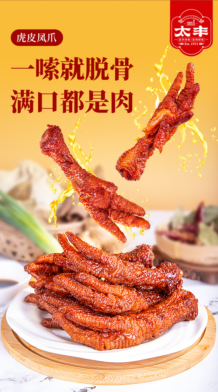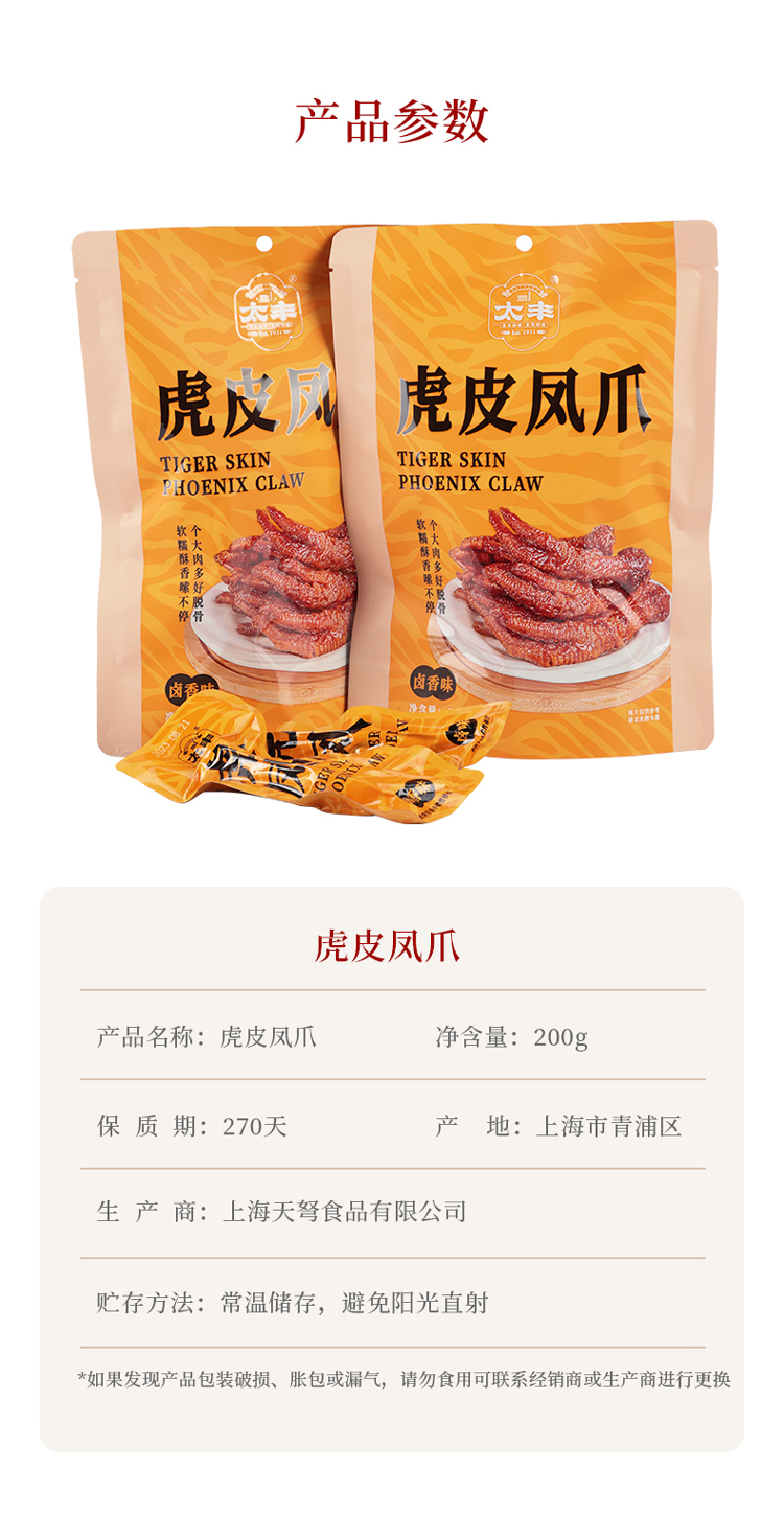 太丰食品虎皮凤爪卤香味去甲鸡爪子小零食办公室即食解馋休闲小吃