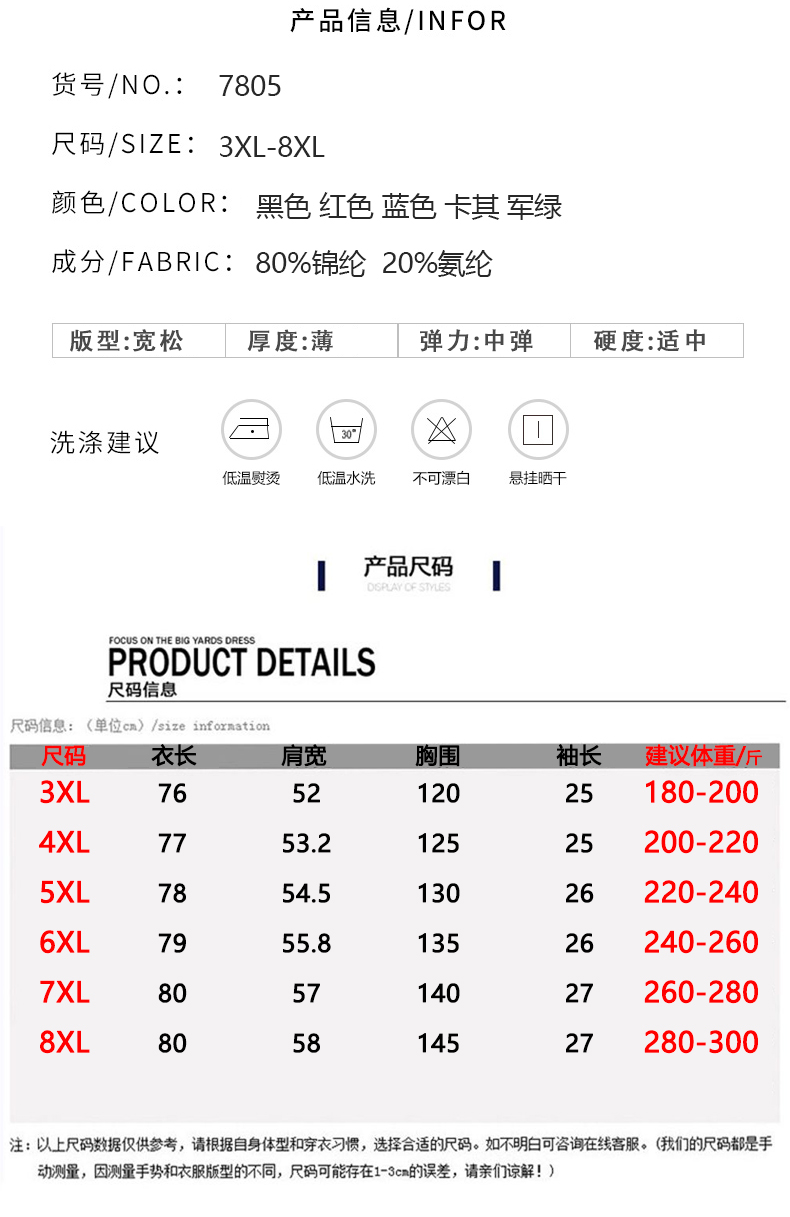 - ¥159.00红色,7XL(260-280斤)