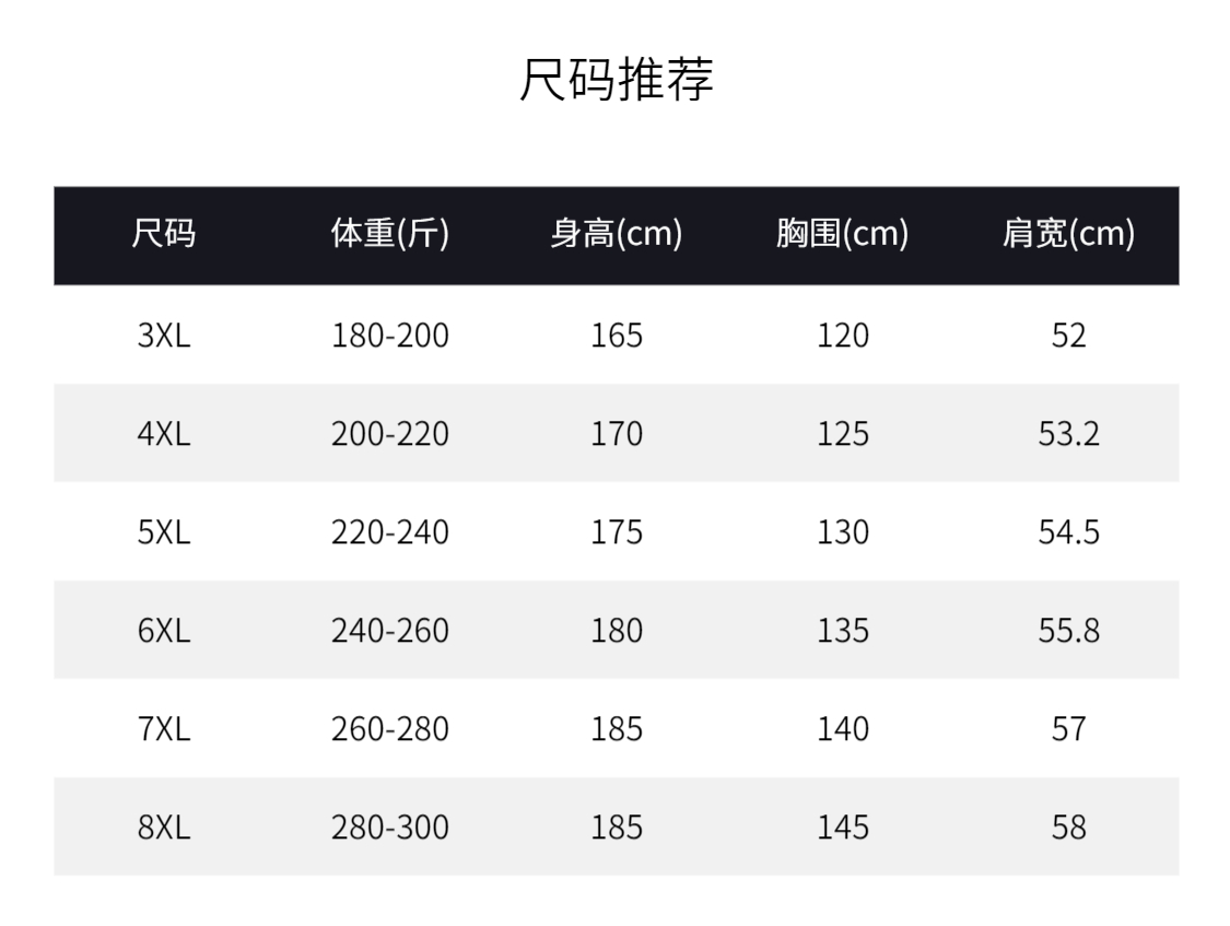 - ¥159.00黑色,7XL(260-280斤)