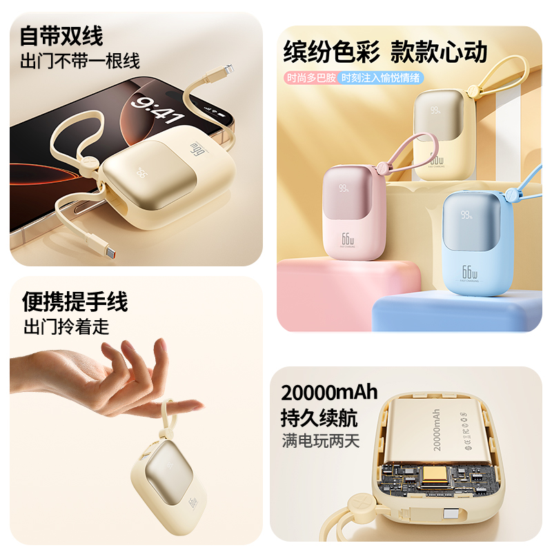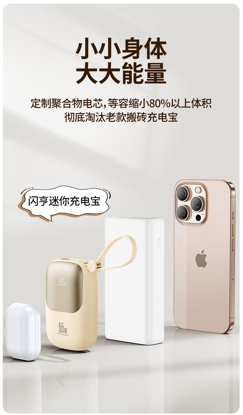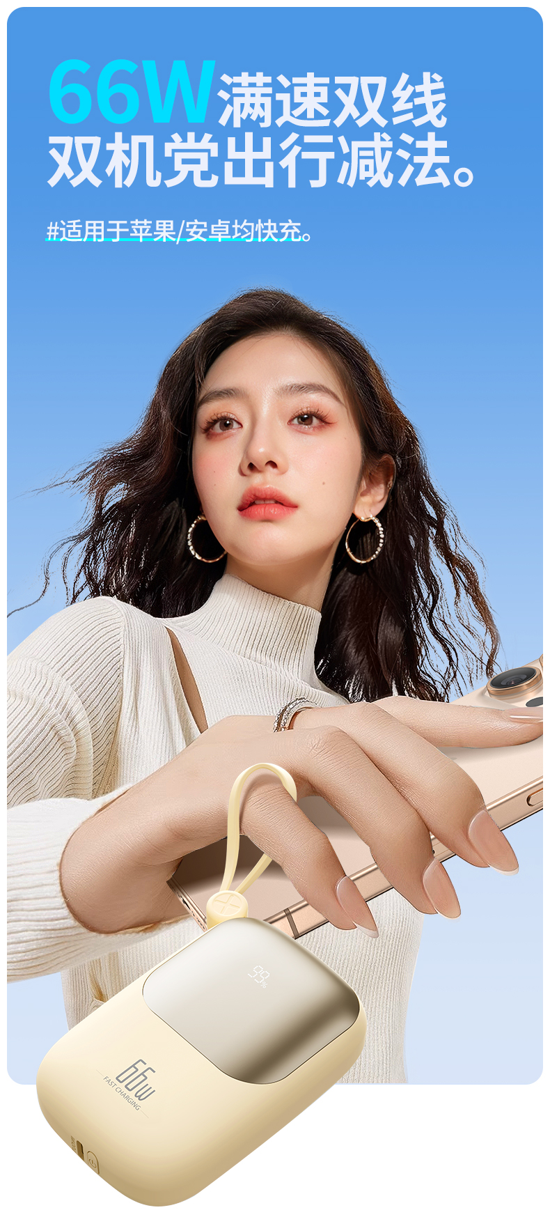 - ¥79.90米黄,顶配版【66W超级快充 提速500%】可充手机/笔记本电脑/小电流设备,20000mAh