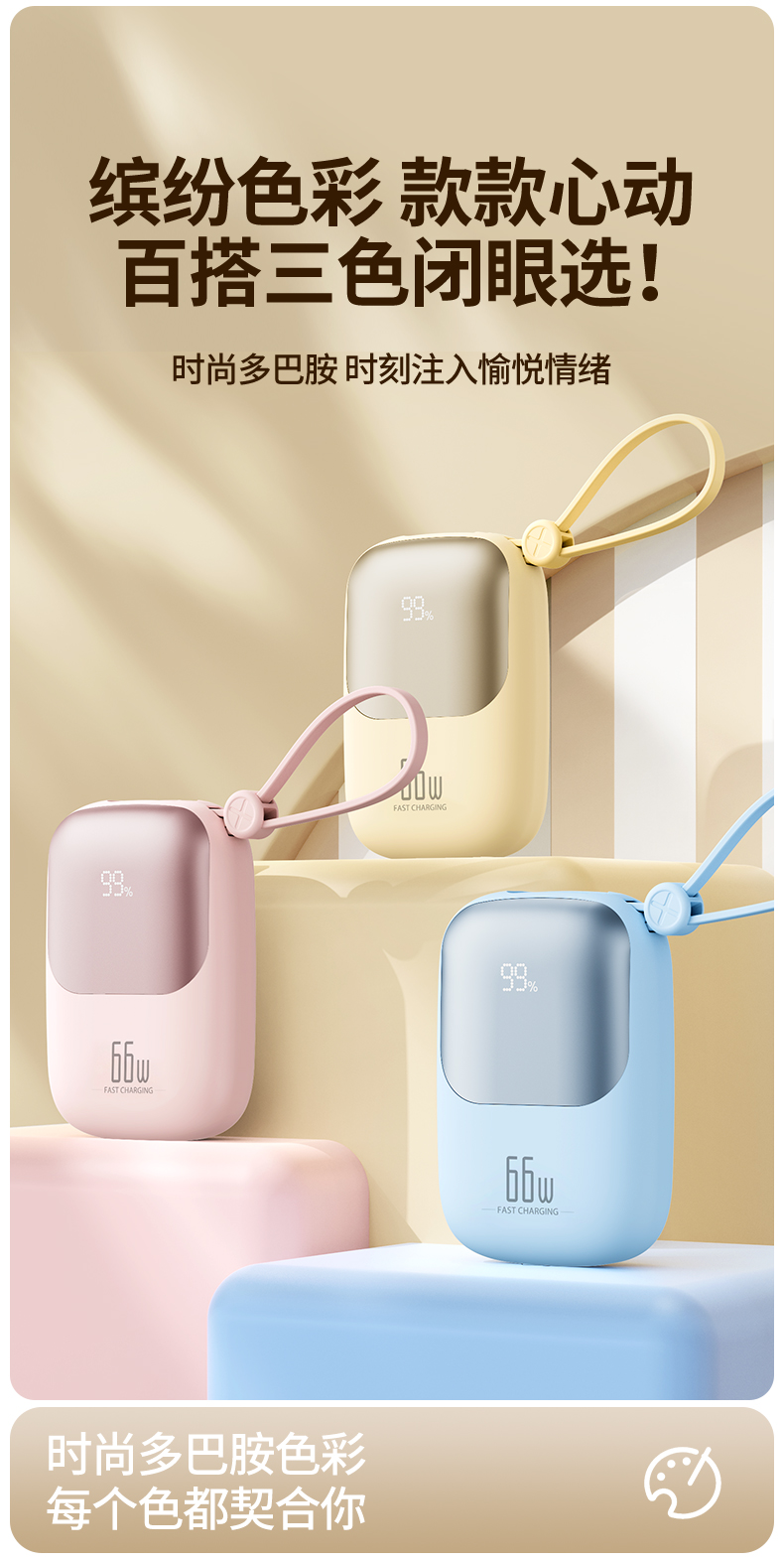 - ¥69.90桃粉,顶配版【66W超级快充 提速500%】可充手机/笔记本电脑/小电流设备,10000mAh
