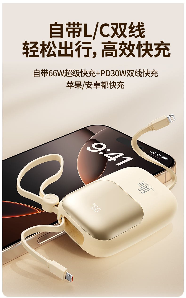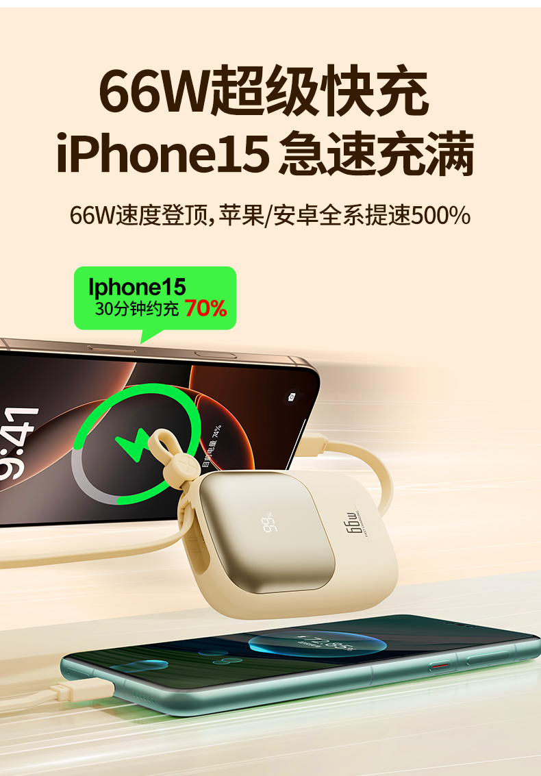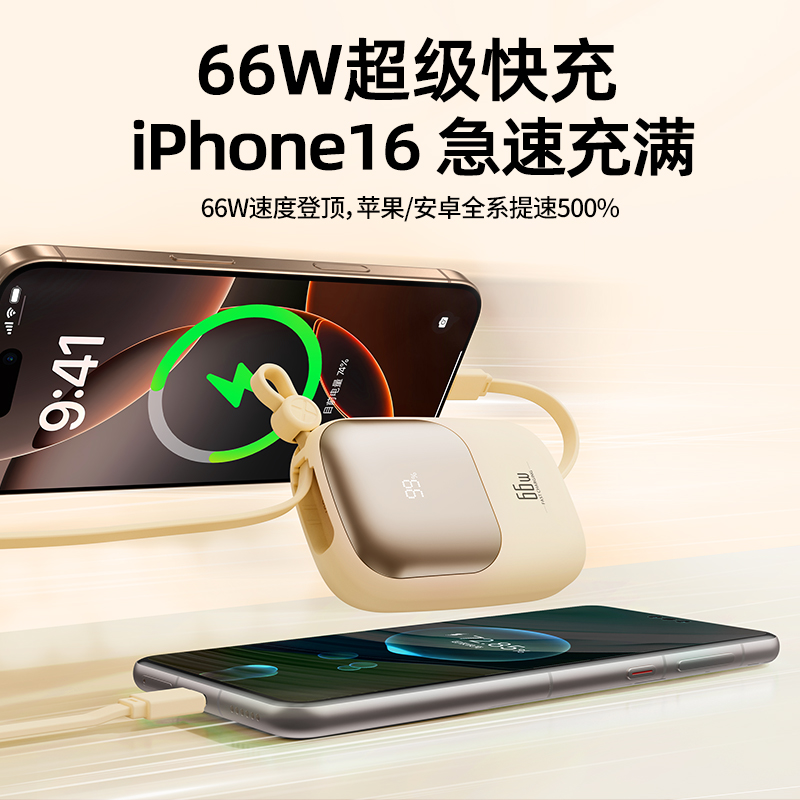 - ¥69.90米黄,顶配版【66W超级快充 提速500%】可充手机/笔记本电脑/小电流设备,10000mAh