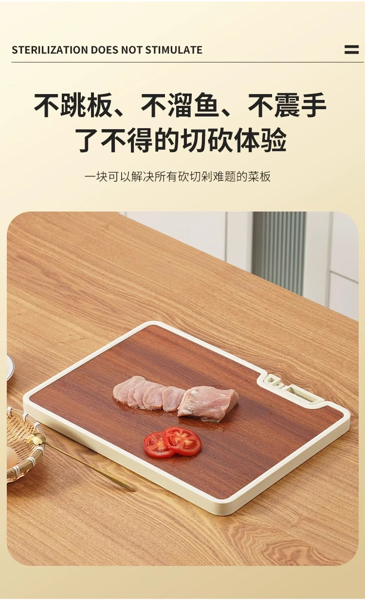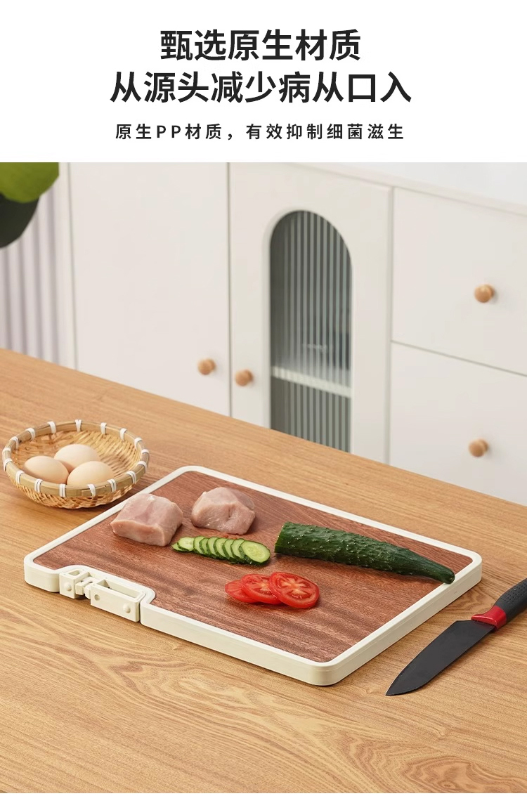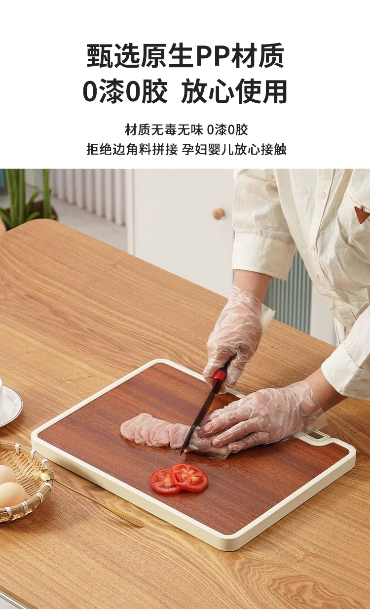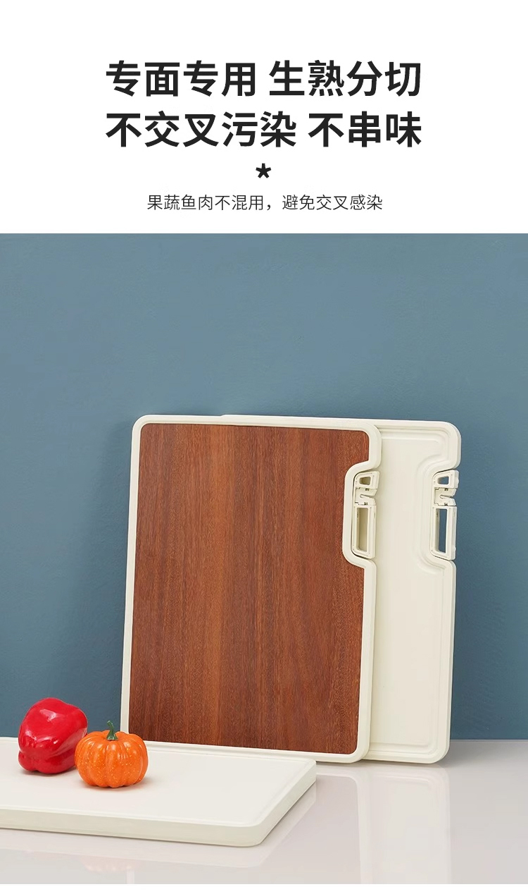 抗菌防霉家用砧板黑金檀木切菜板实木PP双面食品级案板面板磨刀器