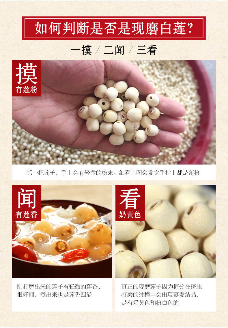 - ¥29.90(粉糯可口)今年糯莲子【批发价: 通芯去皮】,【试吃装】精选湘潭白莲40g*3袋(少量)