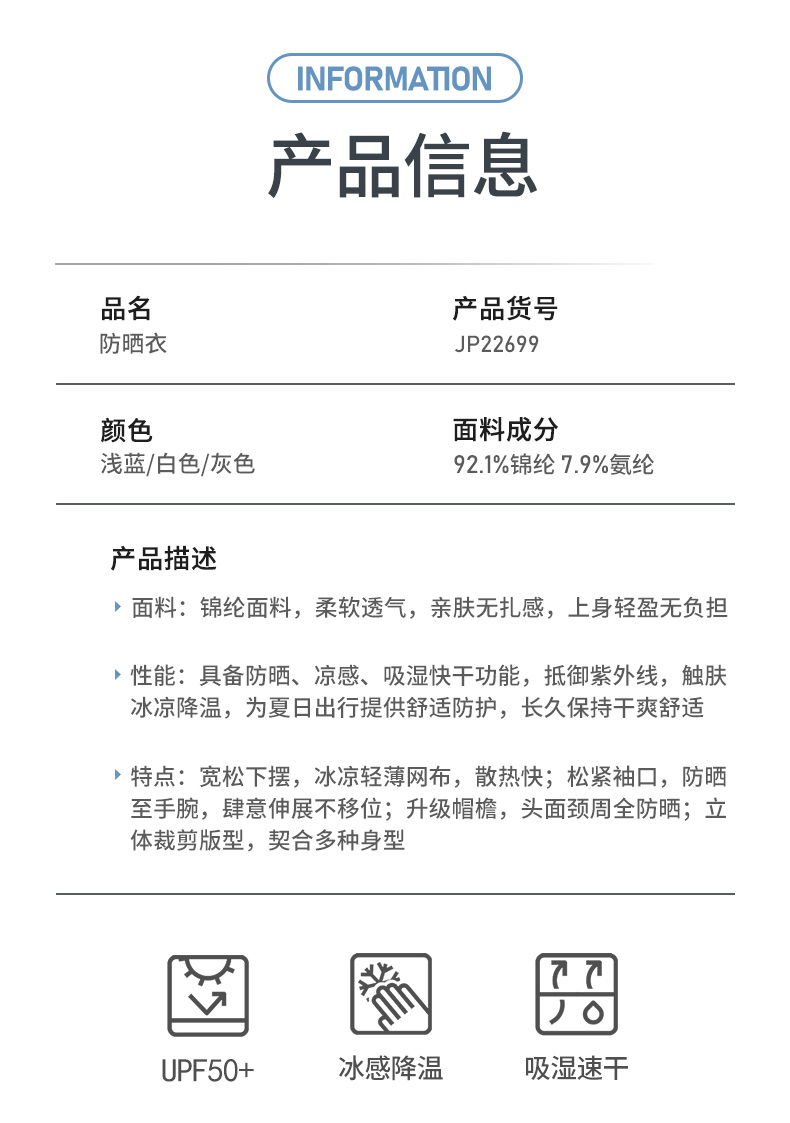 - ¥118.00JP22699-浅蓝色,2XL(建议141-155斤)