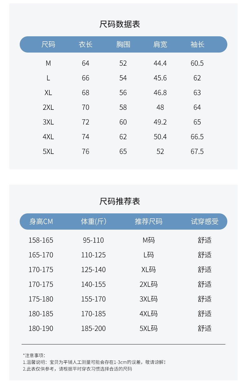 - ¥118.00JP22699-浅蓝色,5XL(建议176-185斤)
