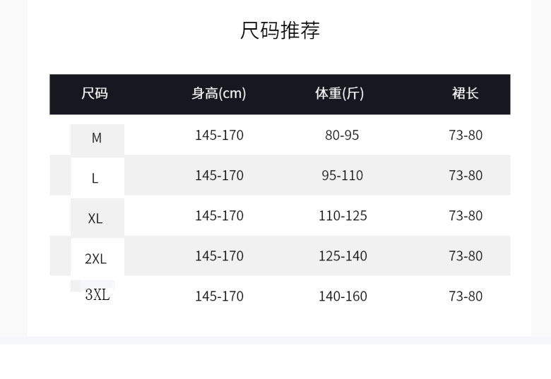 - ¥19.99黑色长款159((裙长80cm)),3XL(推荐(140-160斤))