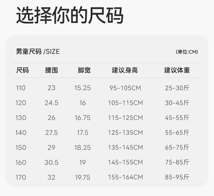 - ¥49.80春序(男童),160【推荐80-90斤】