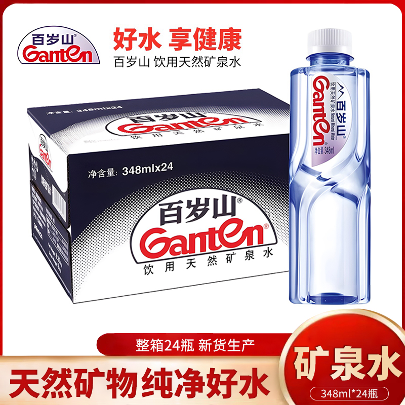 新鲜日期百岁山天然矿泉水饮用水348ml瓶12瓶装旅游会议日常便携