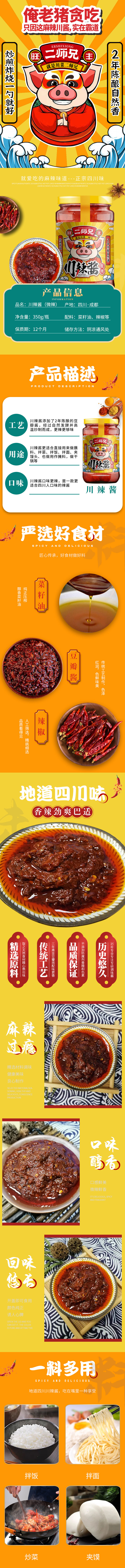 【冬日火锅】旺丰二师兄口味川辣酱(微辣)拌菜拌饭蘸料350g/瓶