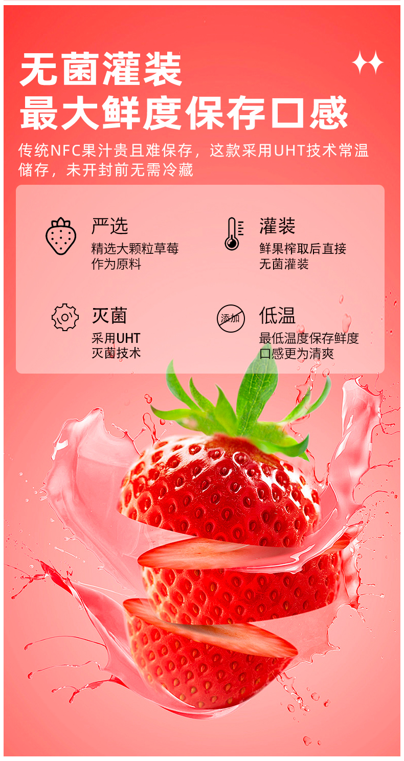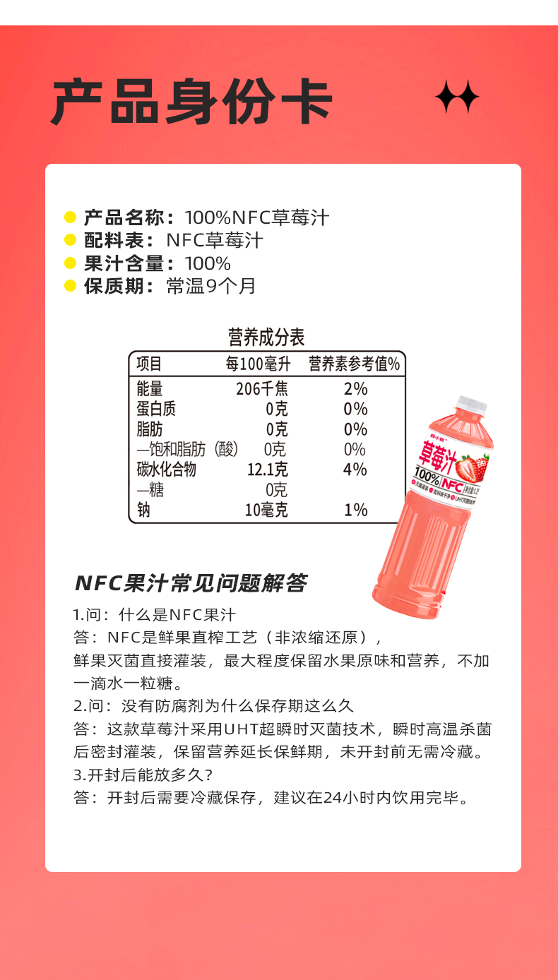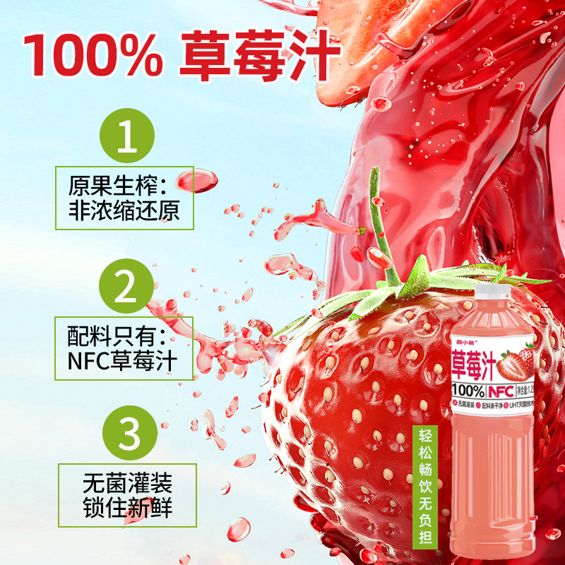 【全新日期】100%鲜果NFC草莓无添加剂纯果蔬汁nfc夏日必备饮品饮料
