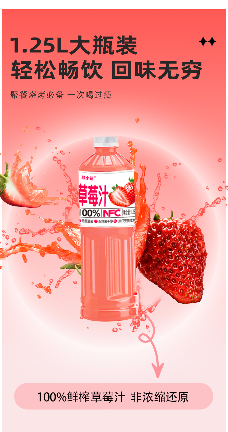 100%NFC草莓汁,1.25L(每瓶1.25L到手两大瓶)