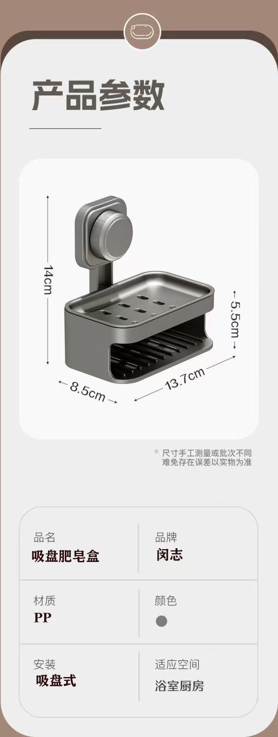 - ¥5.90双层吸盘肥皂盒:【枪灰色1个装】轻松沥水