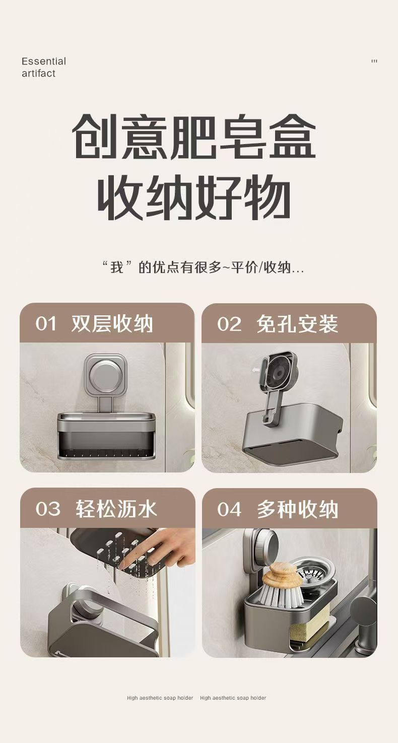 - ¥9.90双层吸盘肥皂盒:【奶白色+枪灰色】轻松沥水