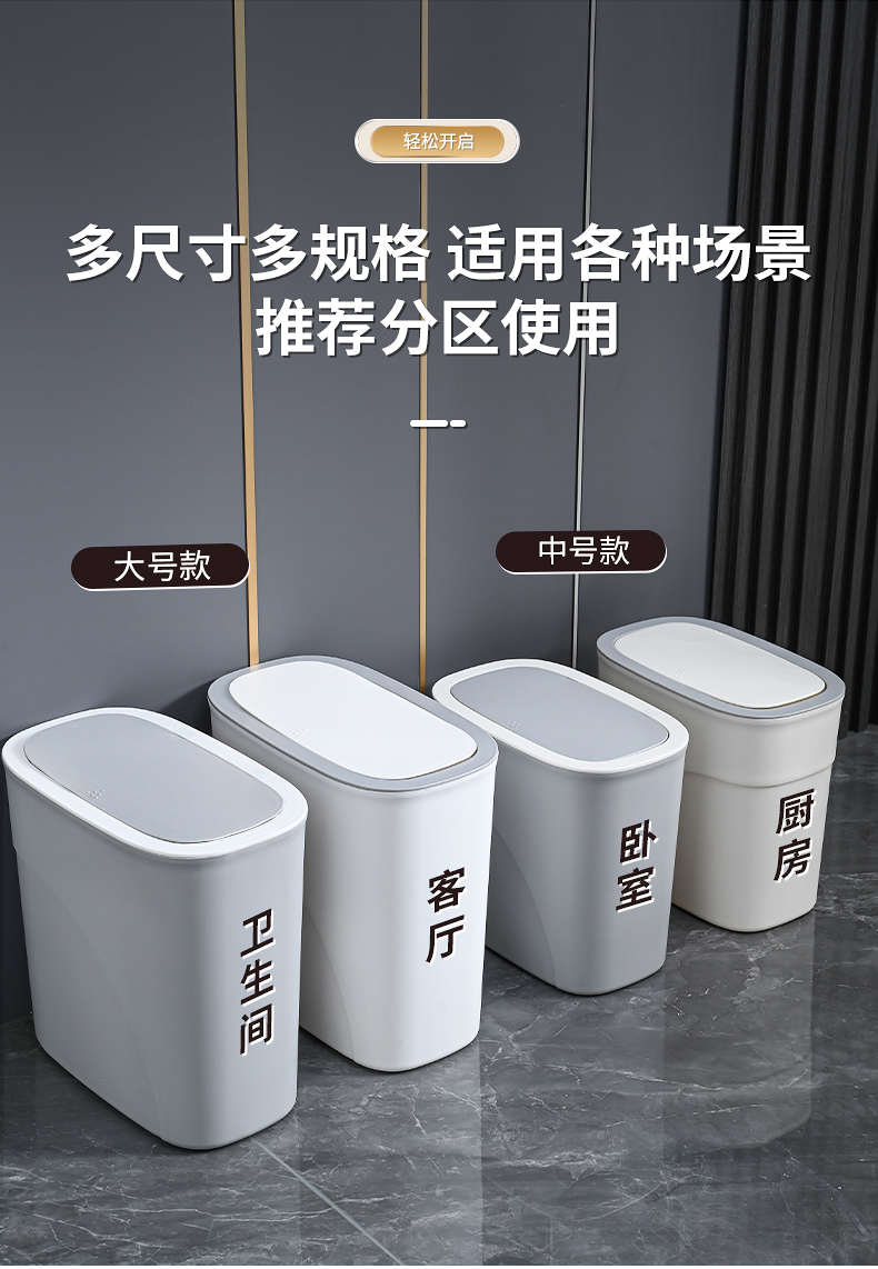 卫生间厕所垃圾桶家用窄缝新款大号大容量带盖客厅厨房卧室卫生桶