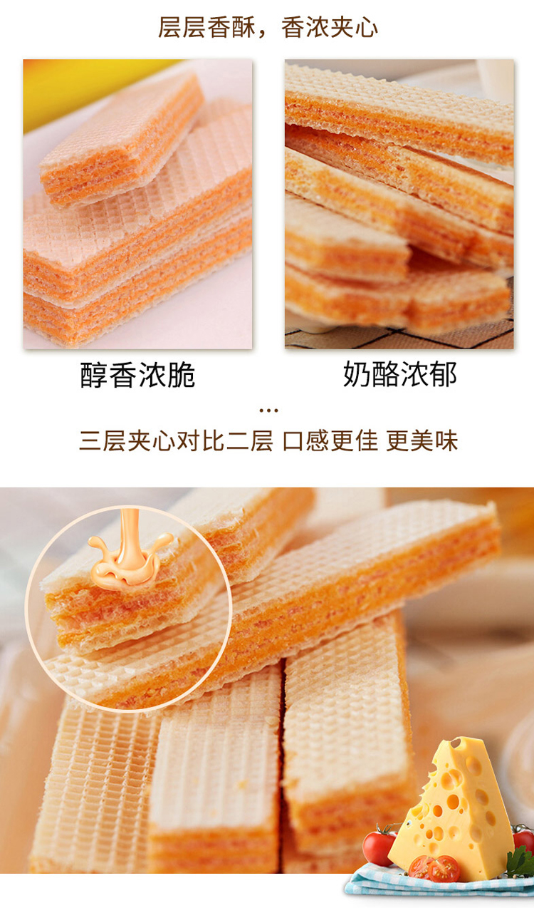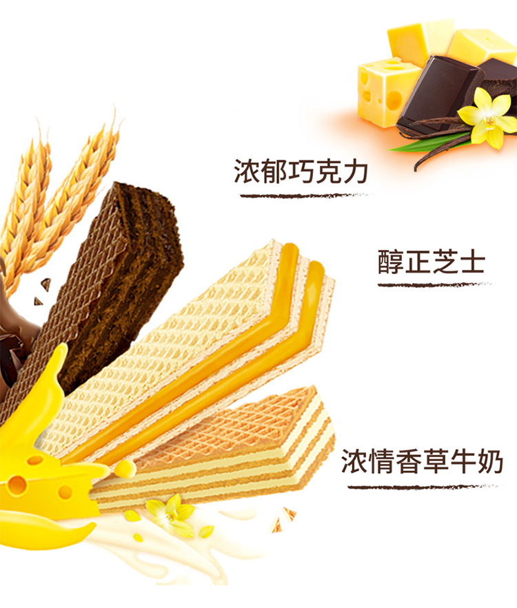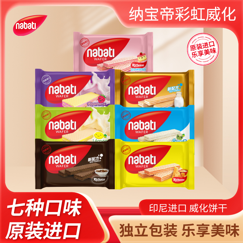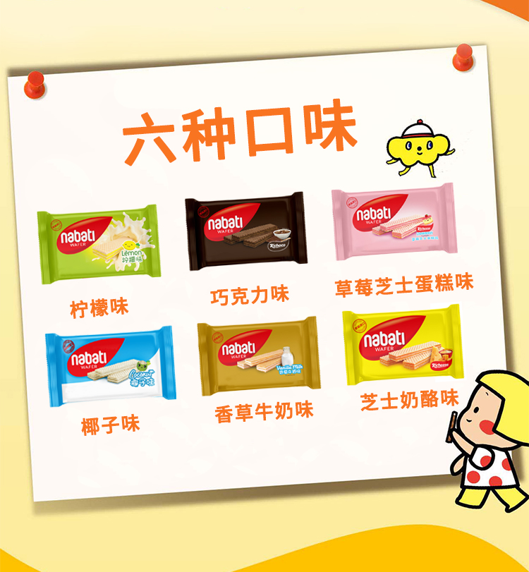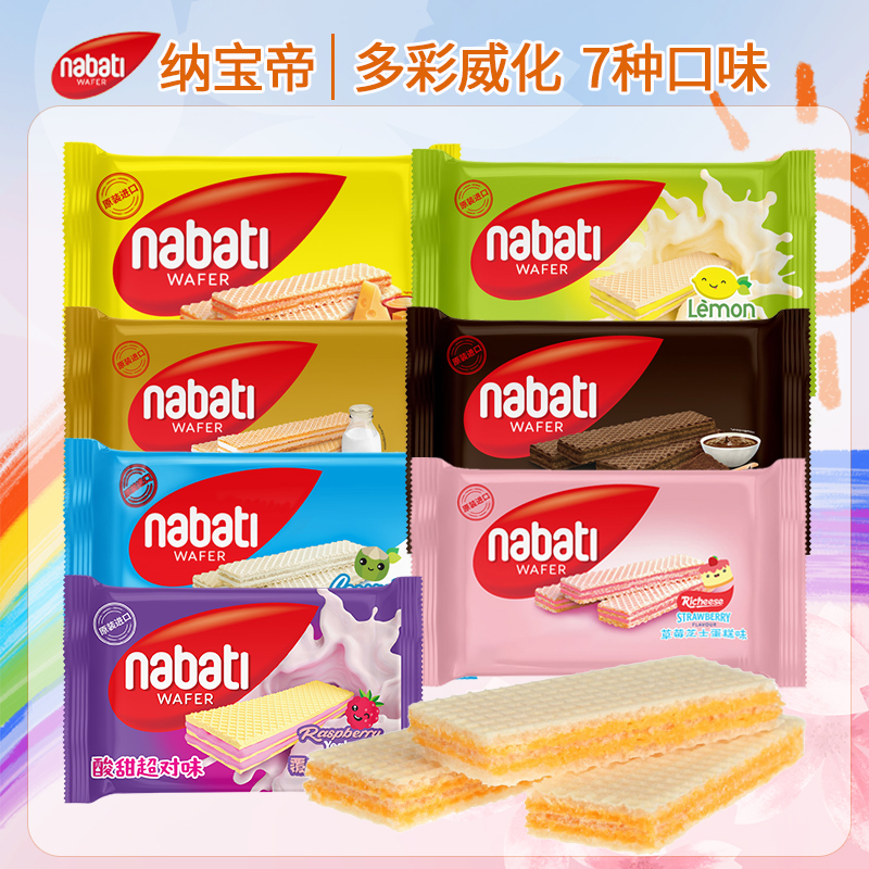 纳宝帝威化饼干,6种口味(草莓芝士蛋糕、柠檬、巧克力、芝士奶酪、香草牛奶、椰子’)香浓夹心,层层酥脆。