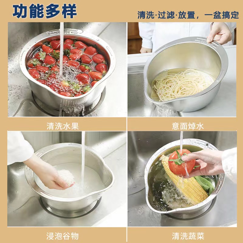 1. 这款沥水淘米盆真的很好用!加厚的不锈钢材质非常耐用,细孔设计使得水分很容易排出,非常适合淘米时使用。