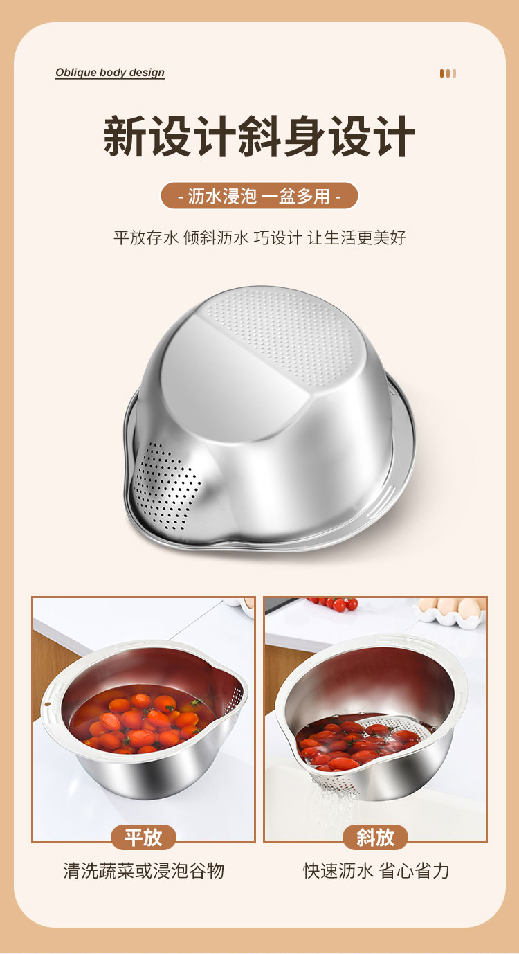 5. 总的来说,这款沥水淘米盆非常不错。不锈钢材质的质量很好,盆底斜底设计也很实用。唯一的小缺点就是可能不够美观,但是实用性更重要。