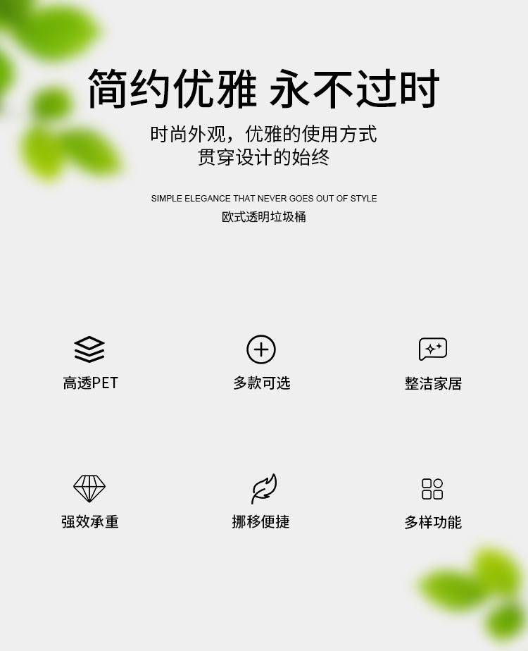 【拍一发二】PET材质 摔不烂垃圾桶家用客厅轻奢高档厨房大容量