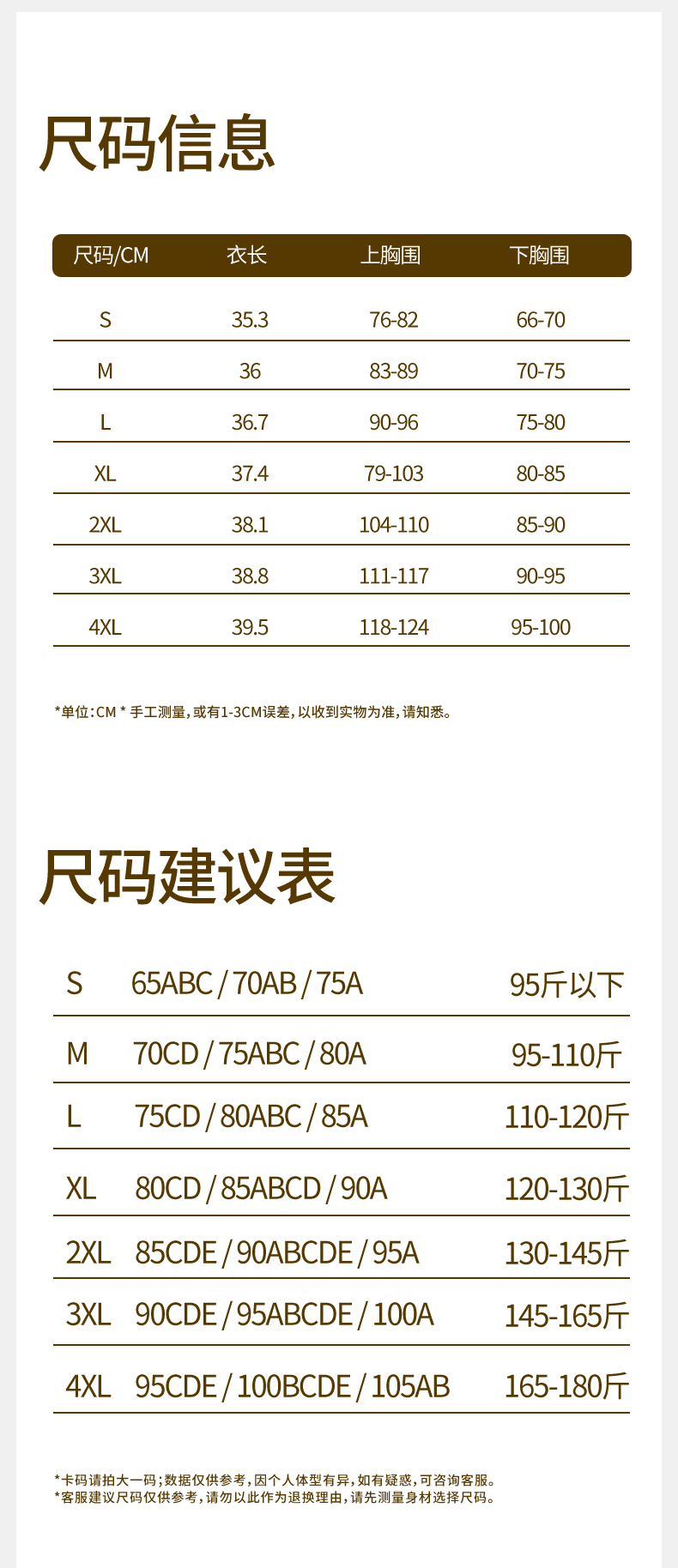 - ¥39.90茶棕色拼色(7A抗菌/固定一体杯),3XL(建议145-165斤)