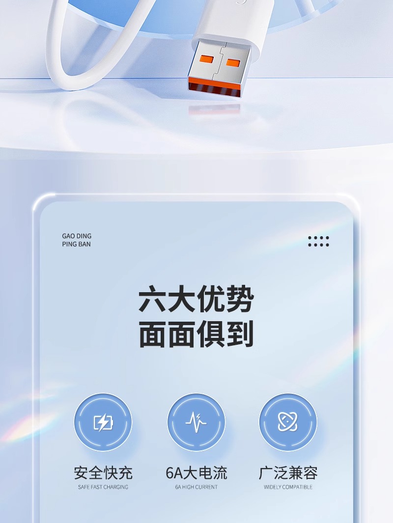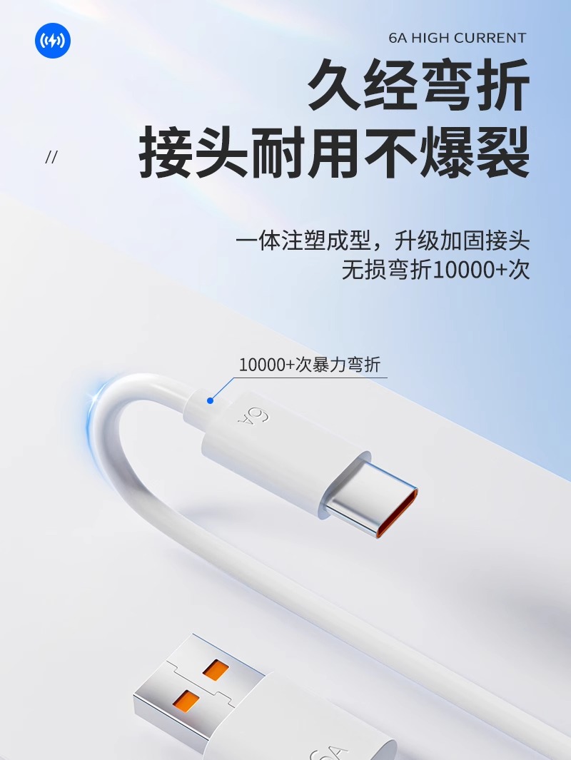 - ¥6.99单线【1.0米】白色Type-c【6A超级闪充】,120W,6A