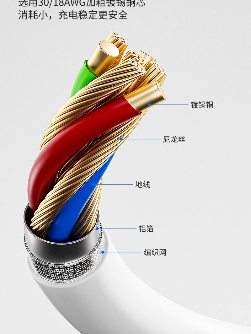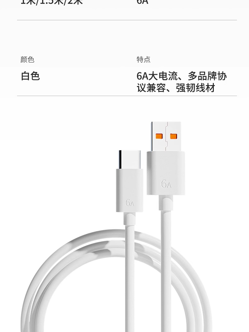- ¥8.99单线【2.0米】白色Type-c【6A超级闪充】,120W,6A
