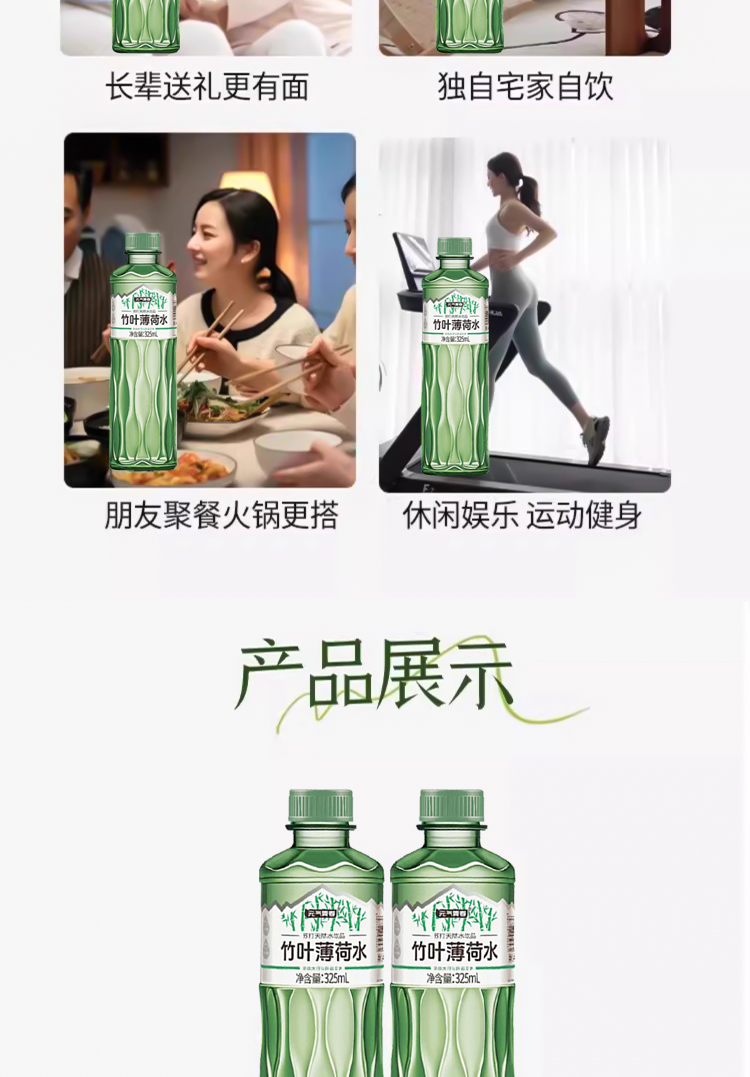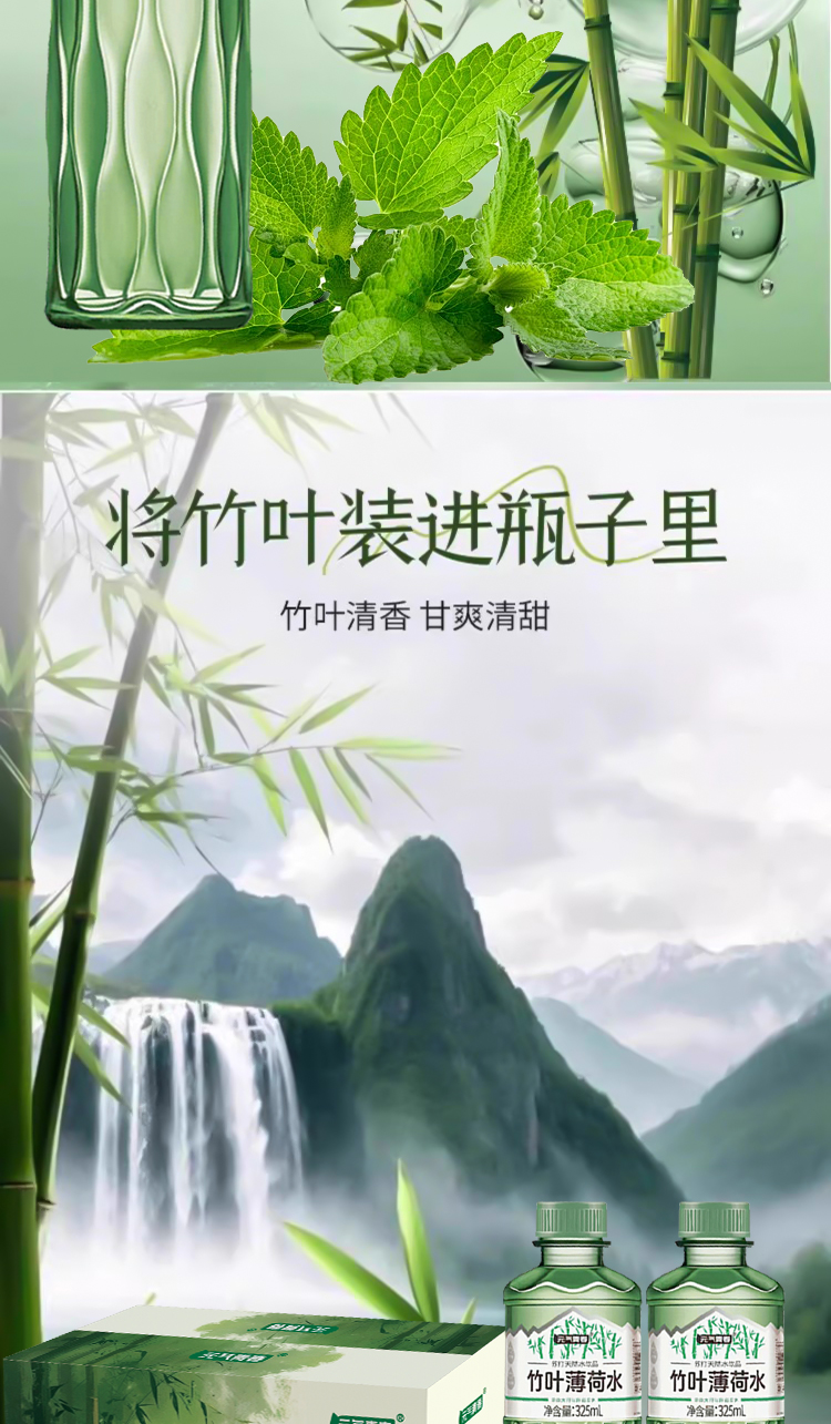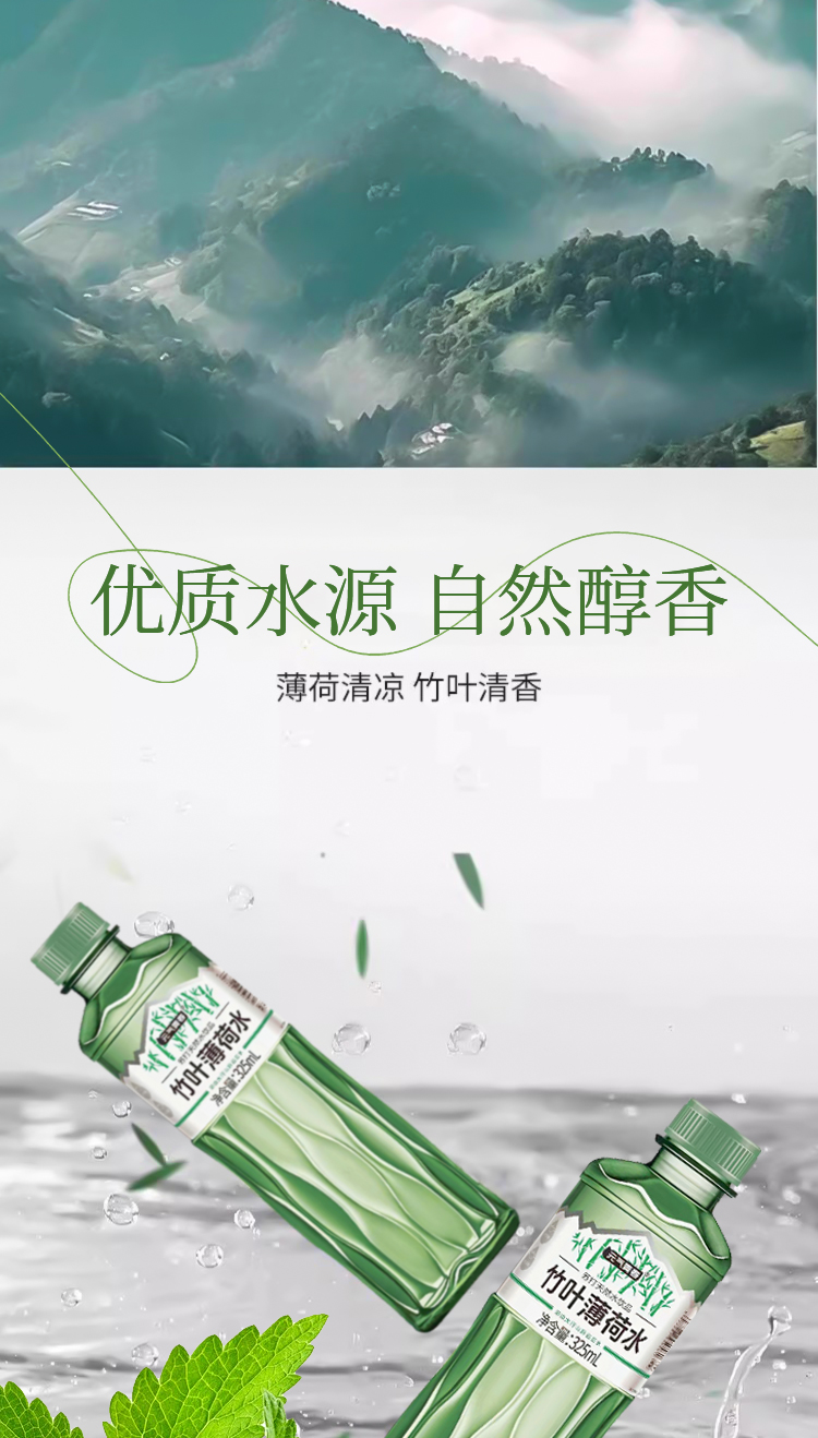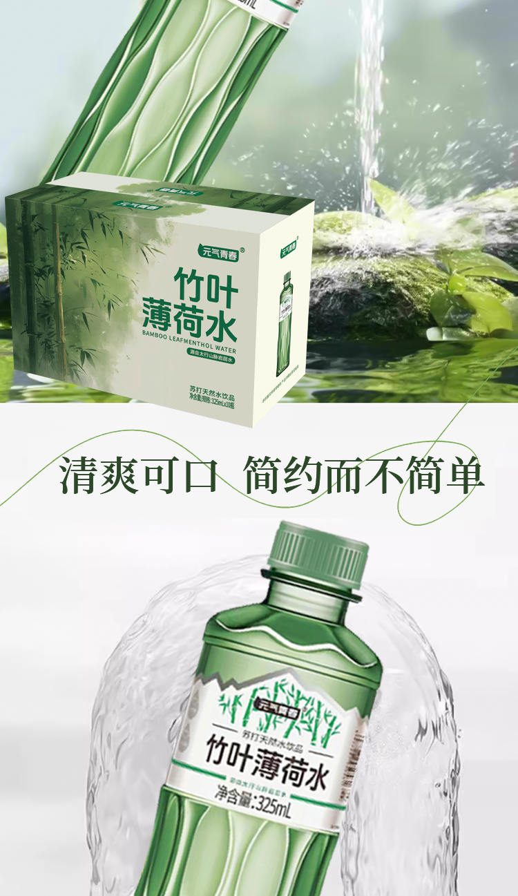 【夏天饮料】0糖竹叶薄荷水325ml/瓶清凉夏日苏打天然水饮品批发