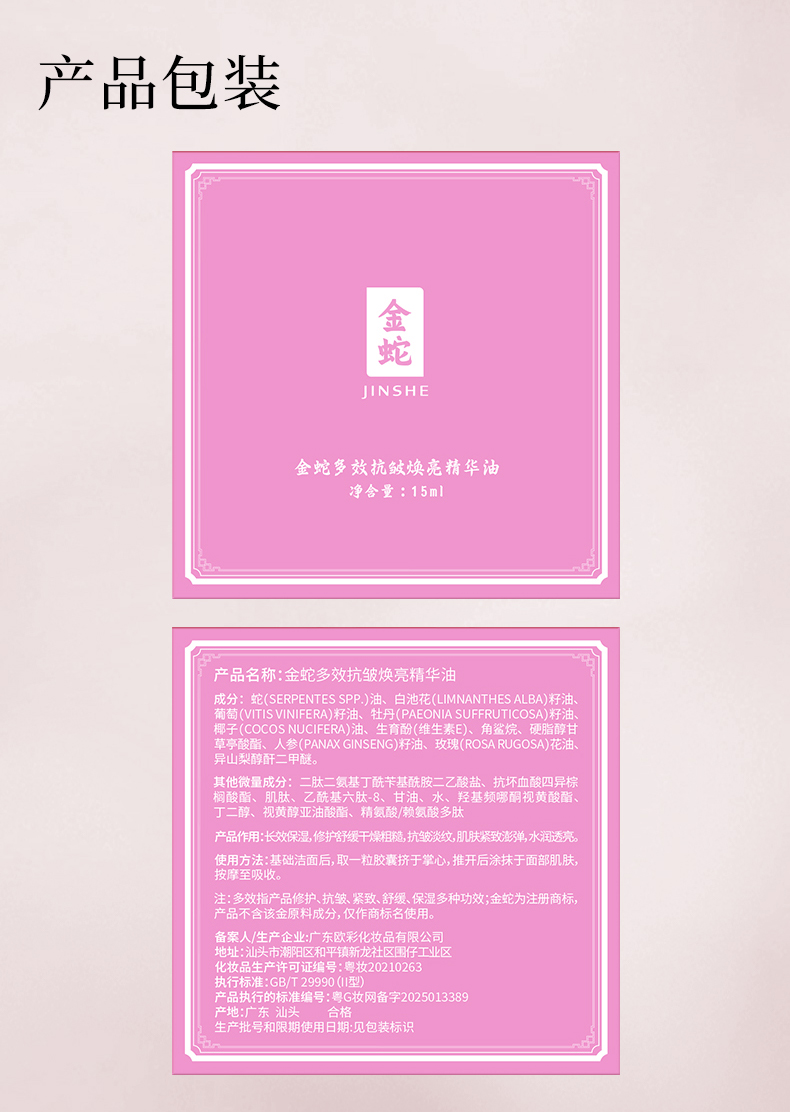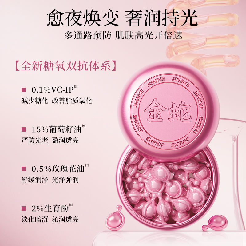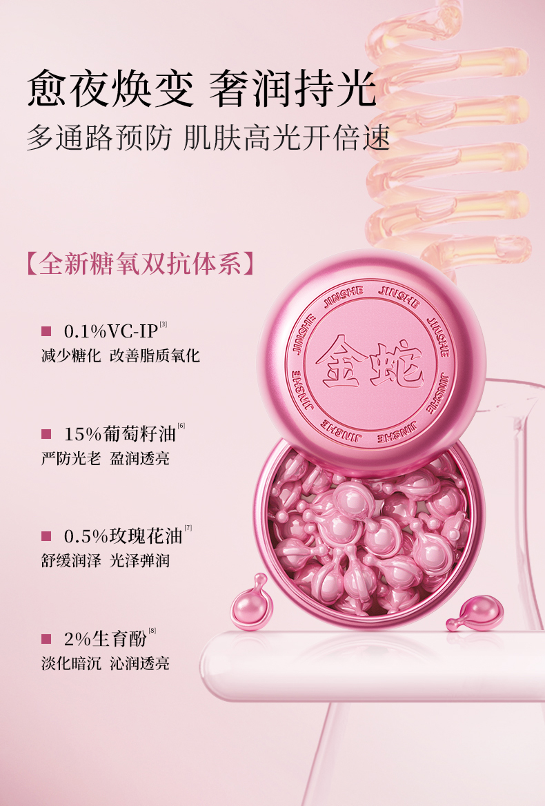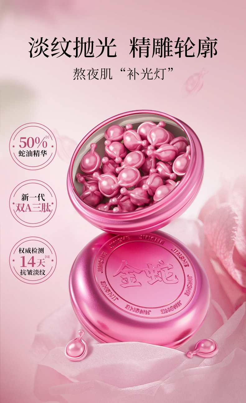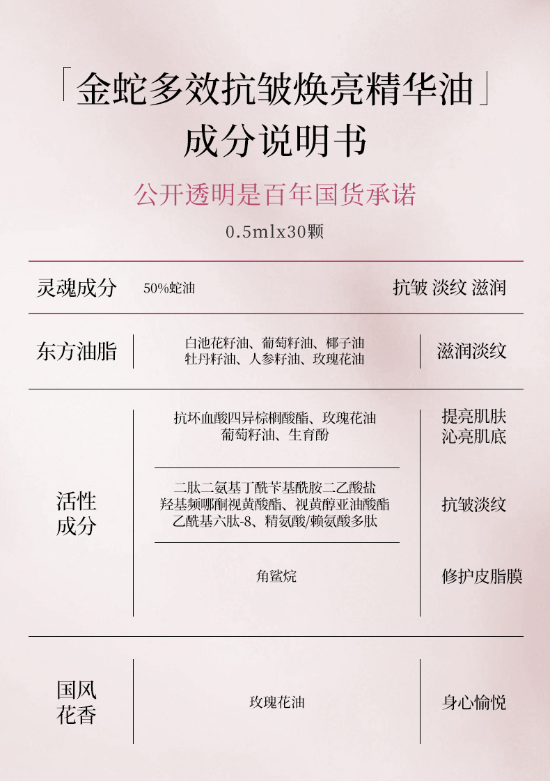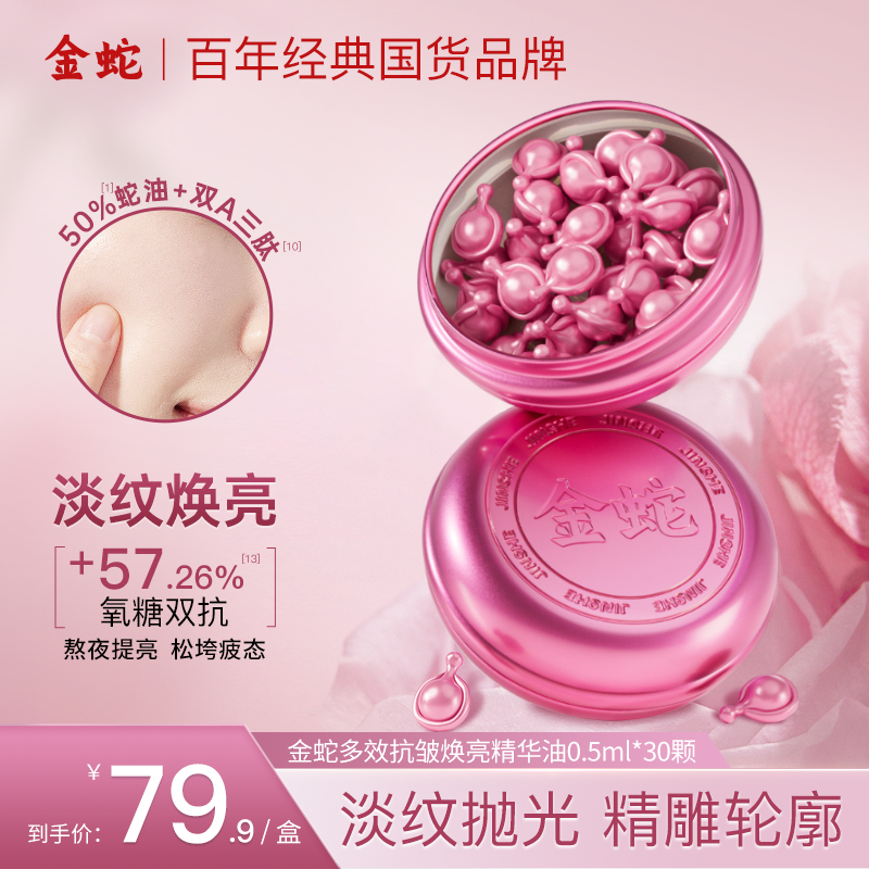 金蛇多效抗皱焕亮精华油淡纹修护紧致次抛蛇油胶囊双抗多效舒缓