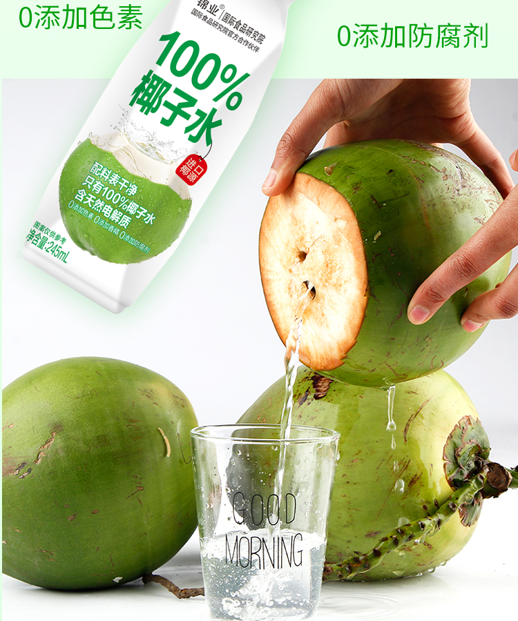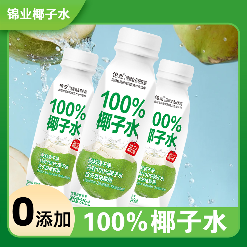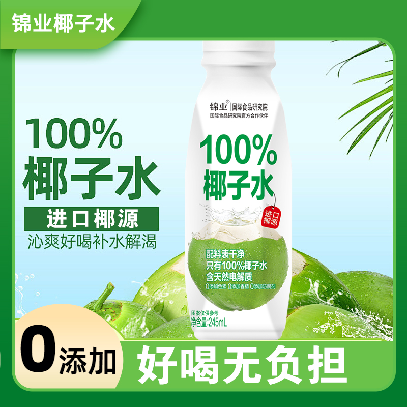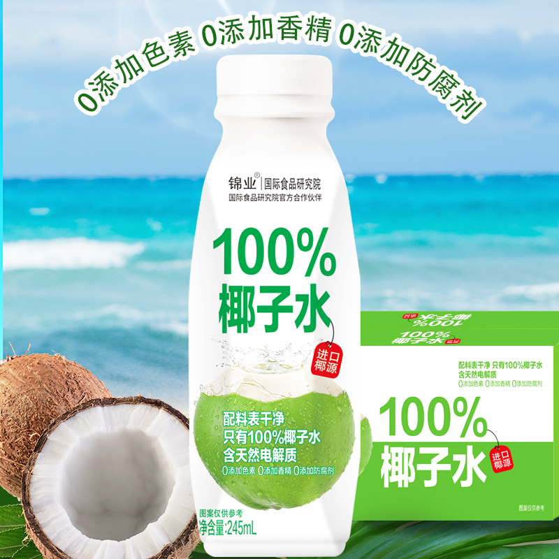 纯天然100%纯椰子水245ml整箱10瓶0糖0脂肪夏日解暑饮品