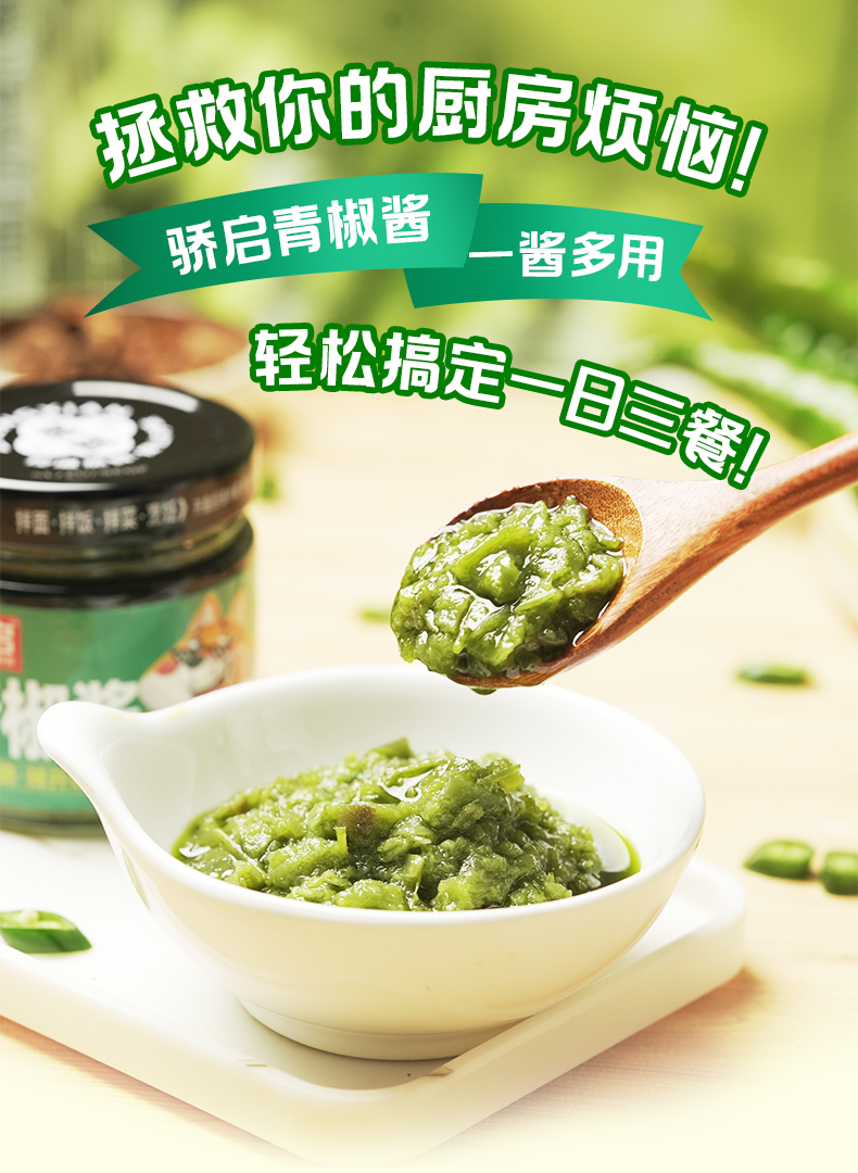 - ¥69.90 0脂无油青椒酱,180g*6瓶(家庭首选)