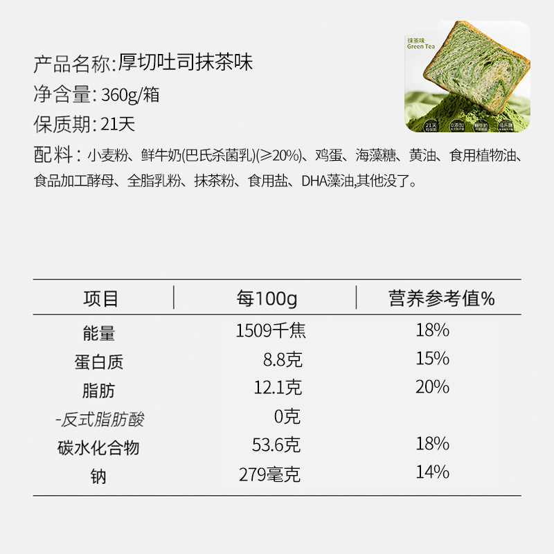 - ¥9.90抹茶味【健身代餐饱腹】,360g(1箱/6枚)