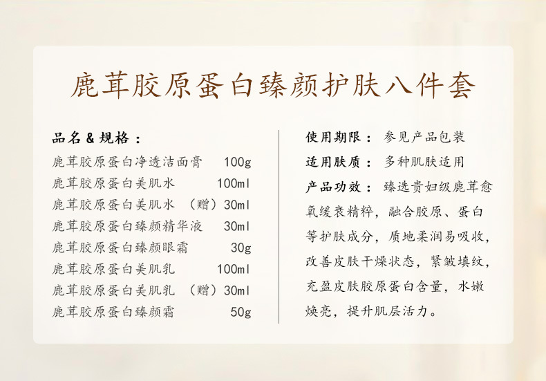 【官方正品送母亲】鹿茸胶原蛋白护肤品水乳八件套补水紧致抗皱套装