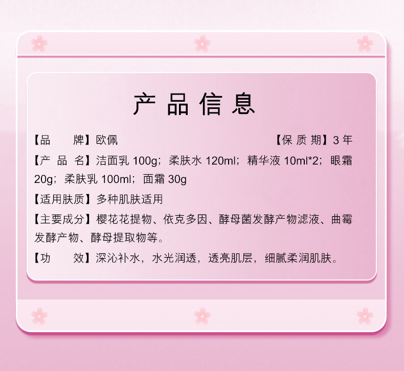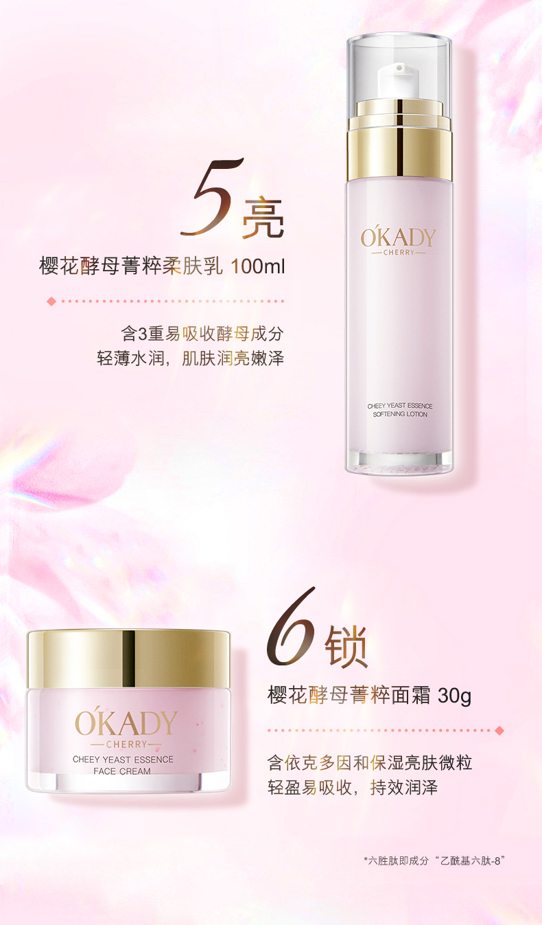 【明星代言送爱人】樱花酵母焕颜七件套补水亮肤水润护肤品套装正品