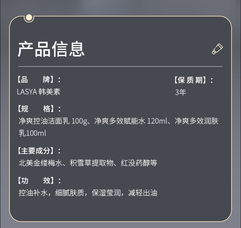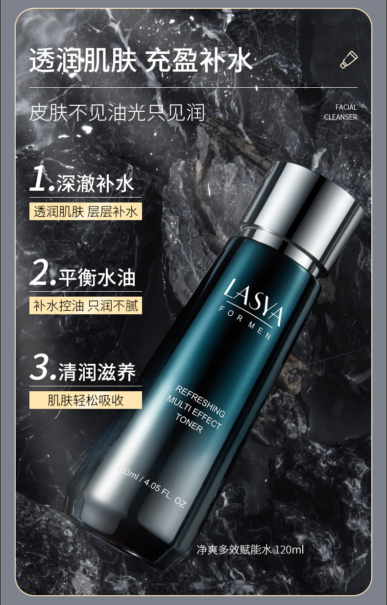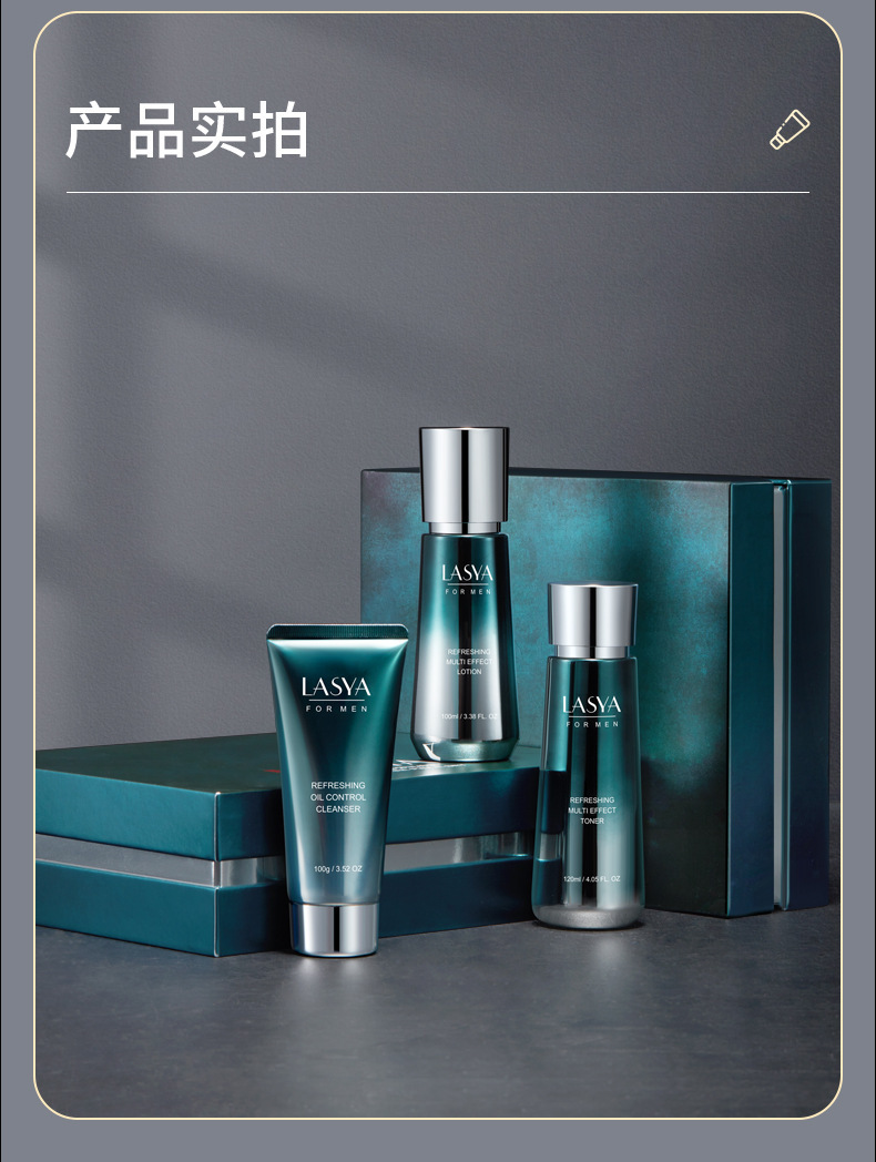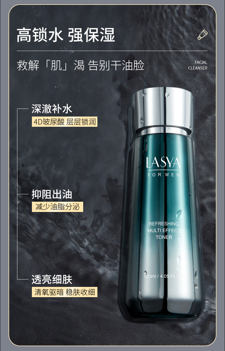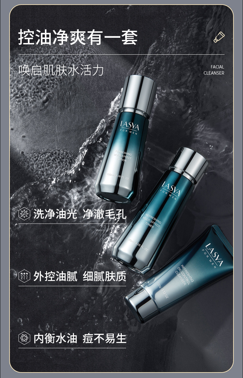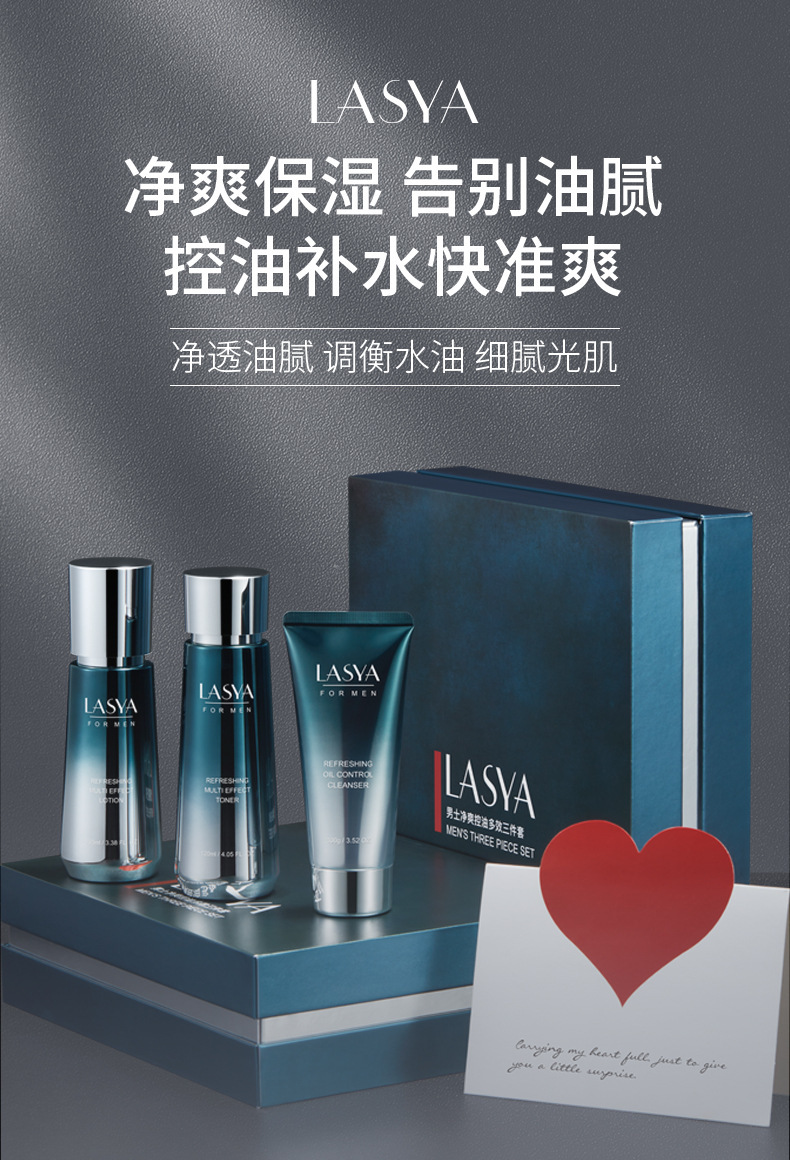 LASYA男士净爽控油多效三件套补水保湿水乳护肤品套装送男友老公
