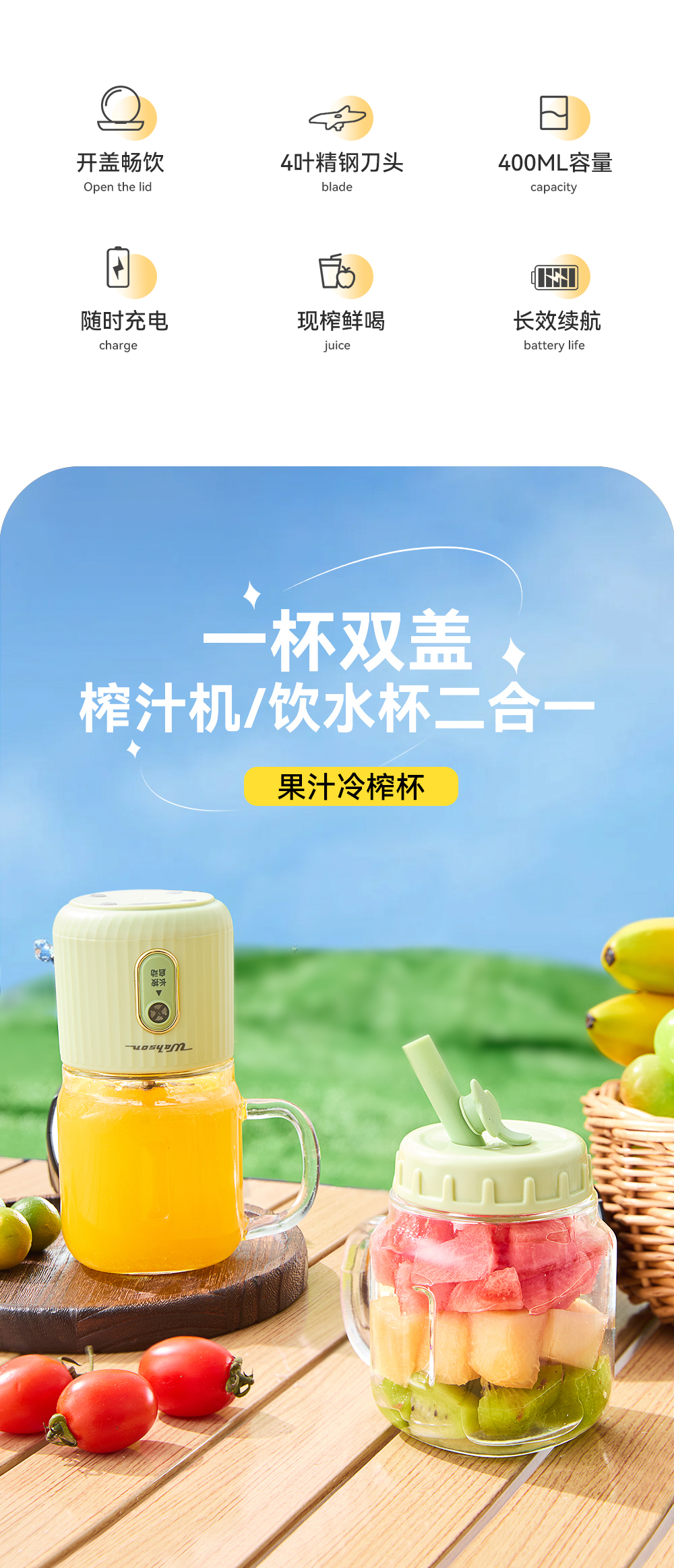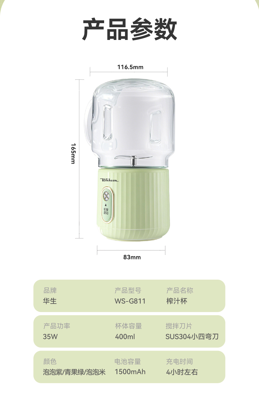 wahson/华生水果榨汁机可碎冰便携多功能电动双盖榨汁杯G811