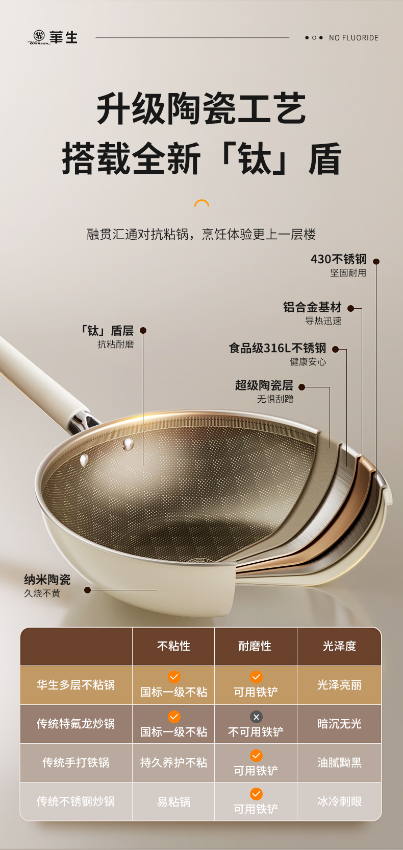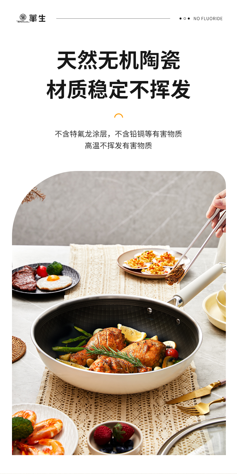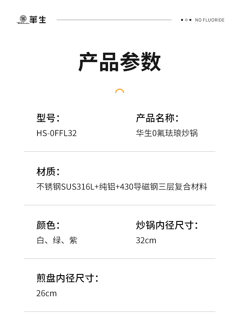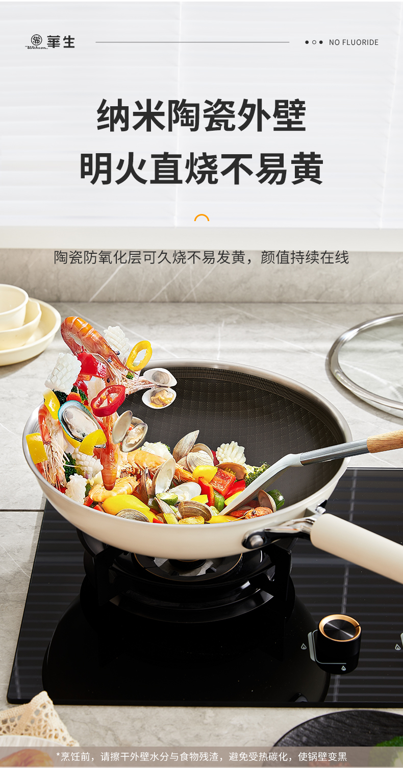 wahson/华生珐琅陶瓷釉不粘锅0氟炒锅0FFL32