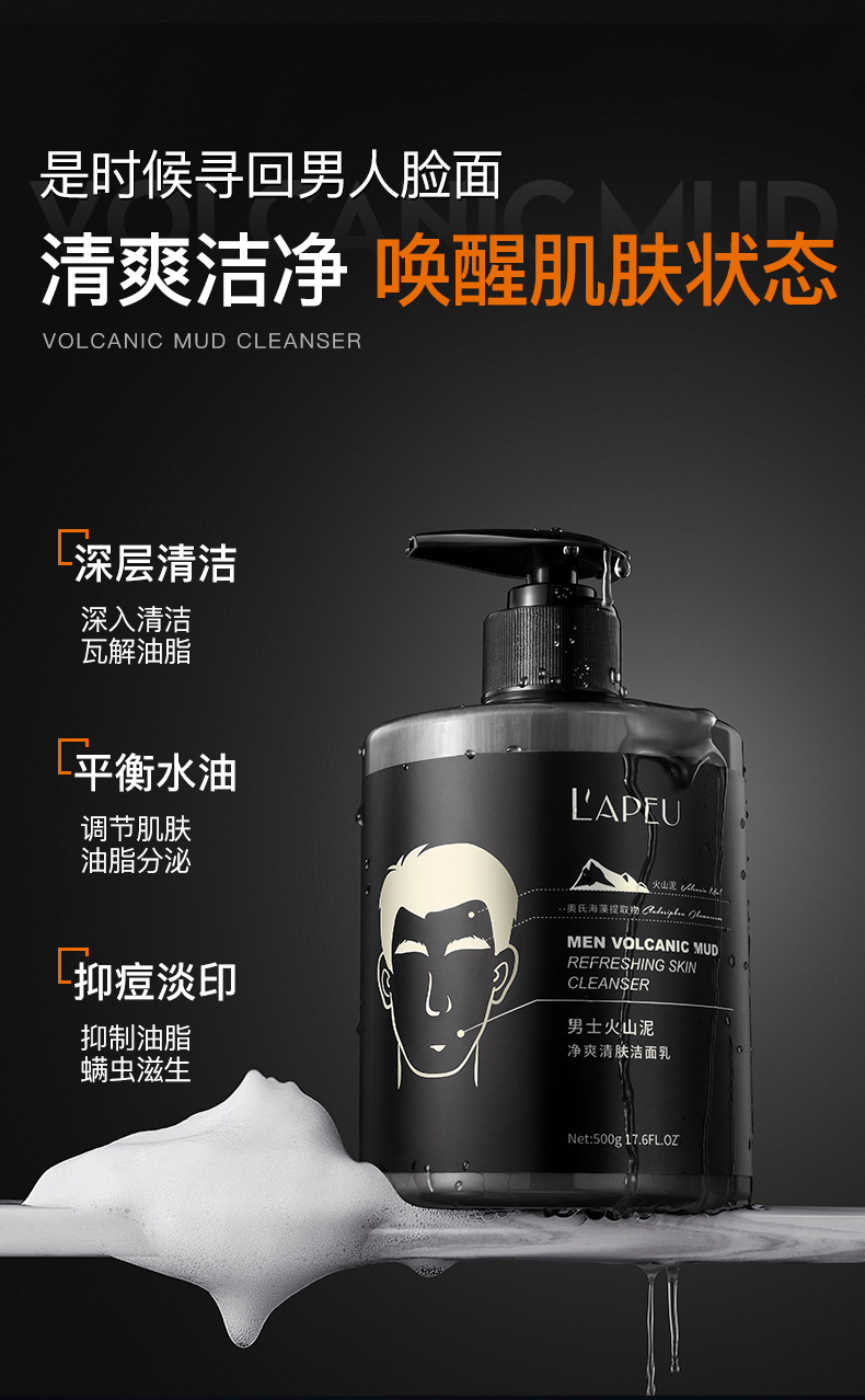 火山泥男士洁面乳500g*1瓶