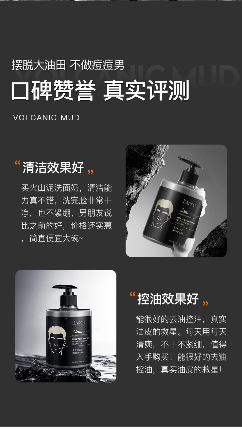 法国兰黛男士火山泥洁面乳氨基酸深层清洁净透补水保湿控油洗面奶