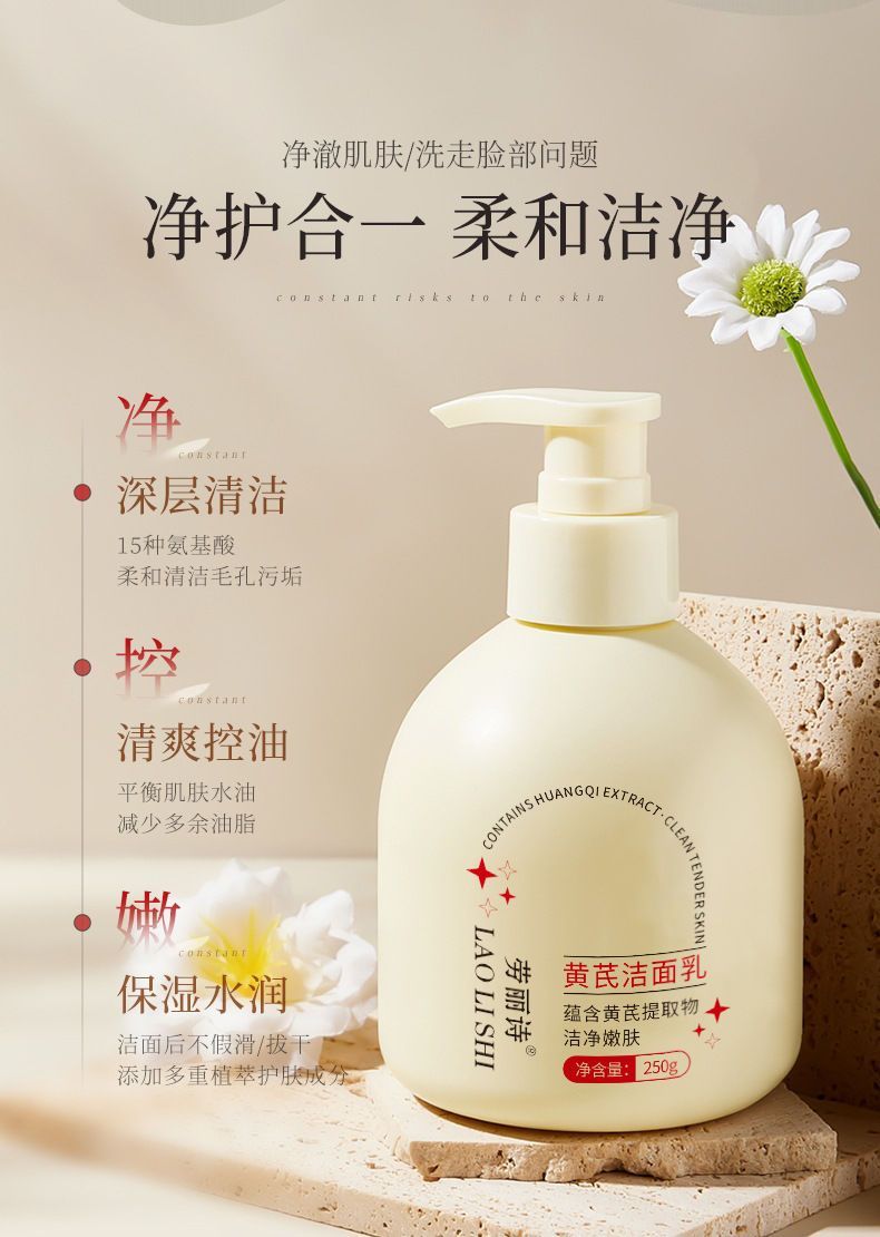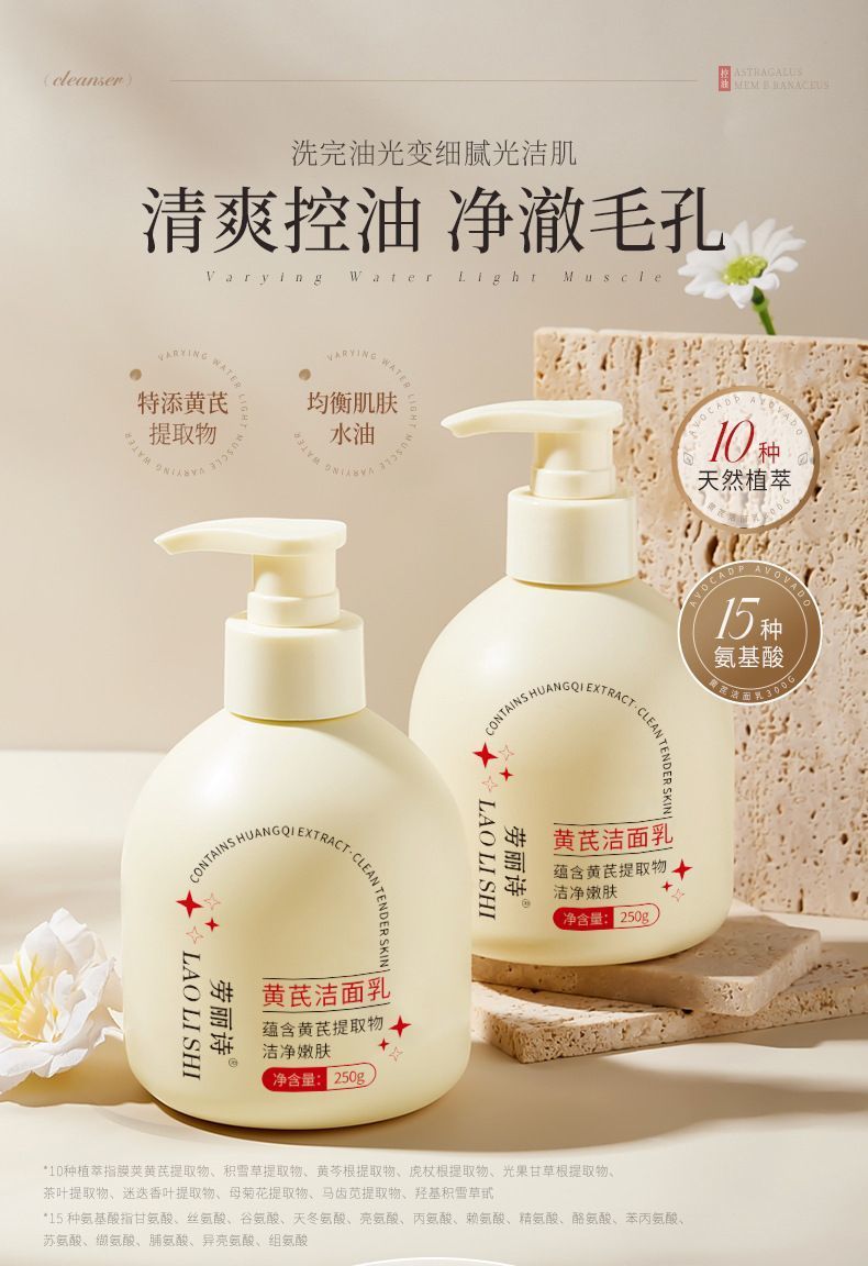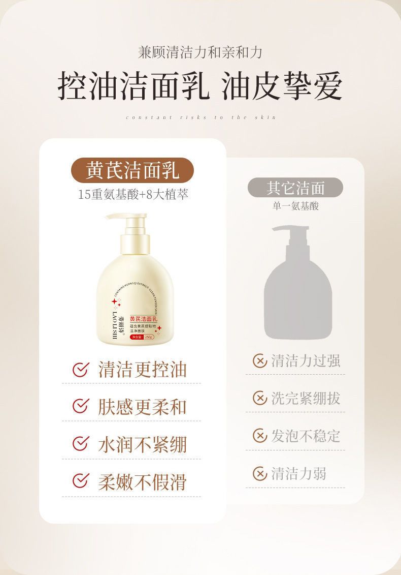 劳丽诗官方黄芪洗面奶氨基酸温和控油祛痘黑头清洁毛孔洁面乳提亮