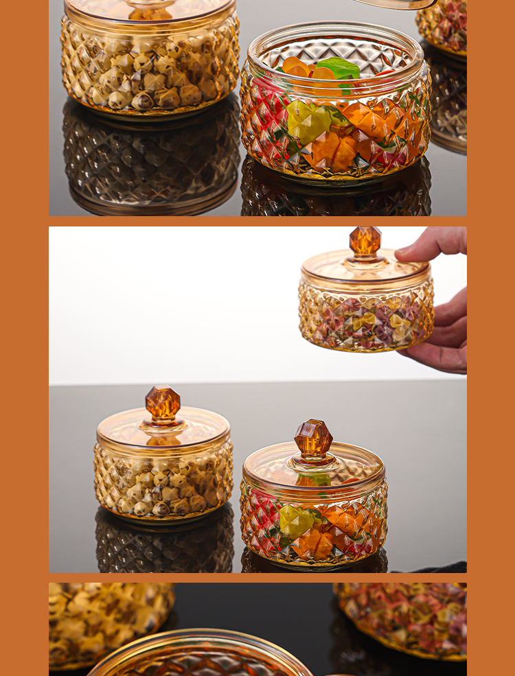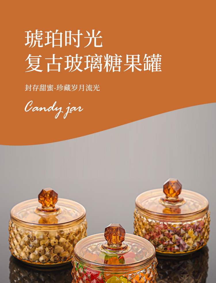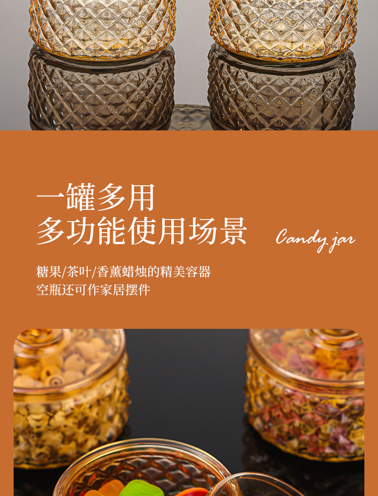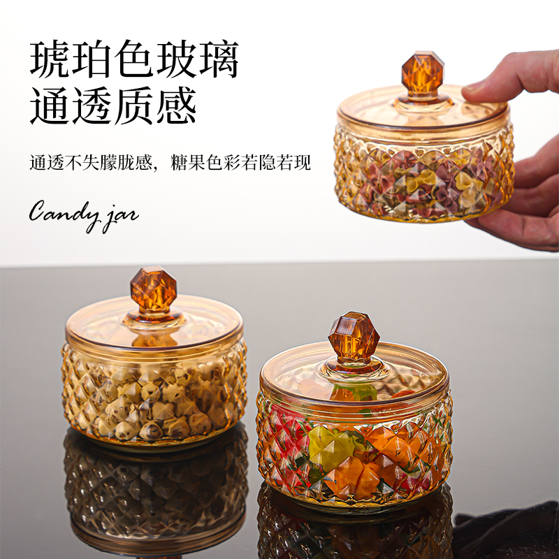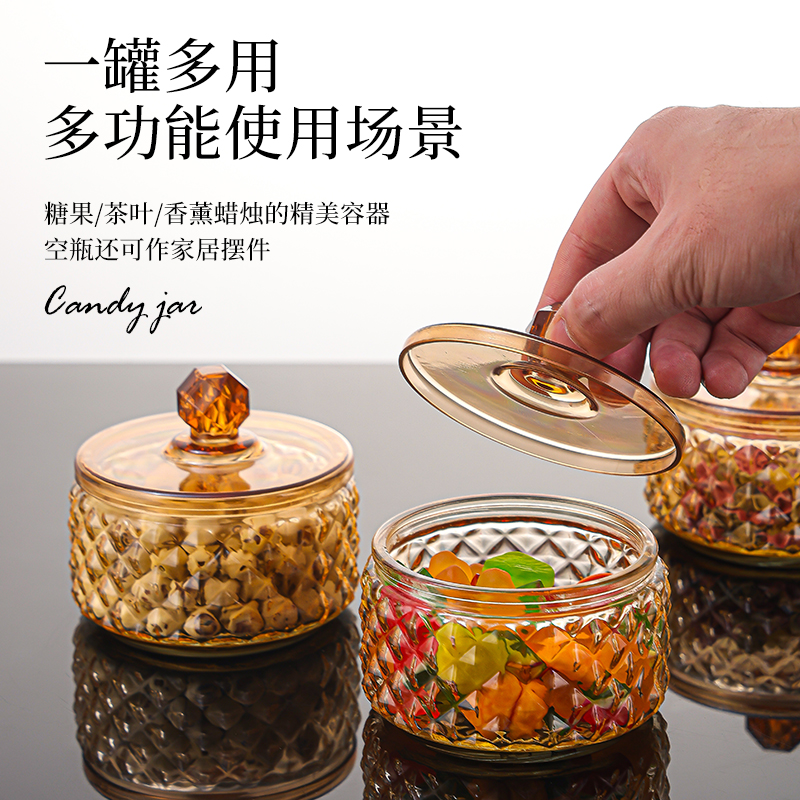 【2只装】创意轻奢玻璃罐带盖糖果罐零食储物罐家用多功能收纳盒