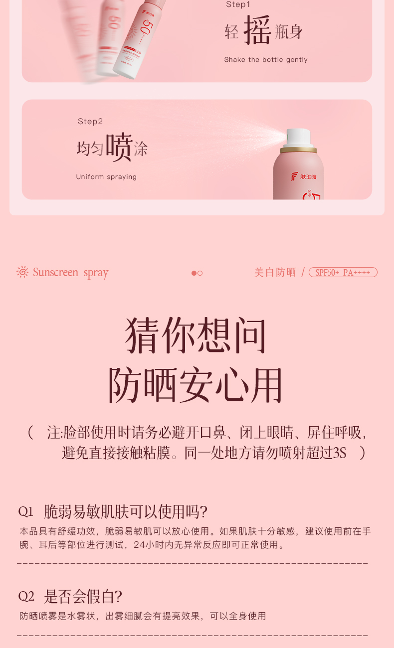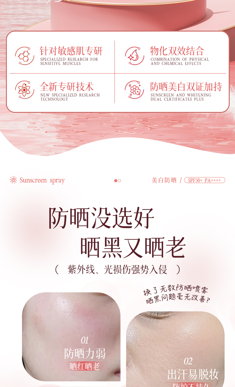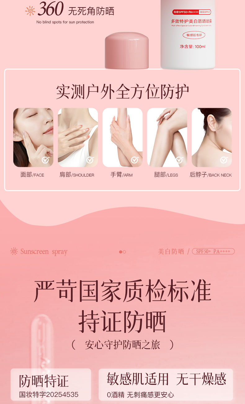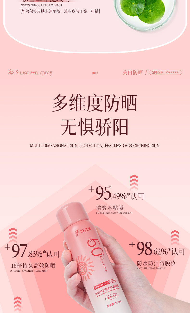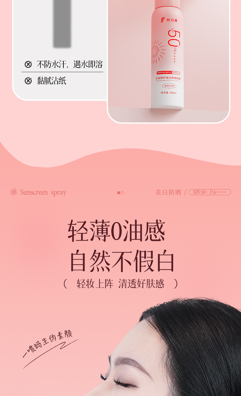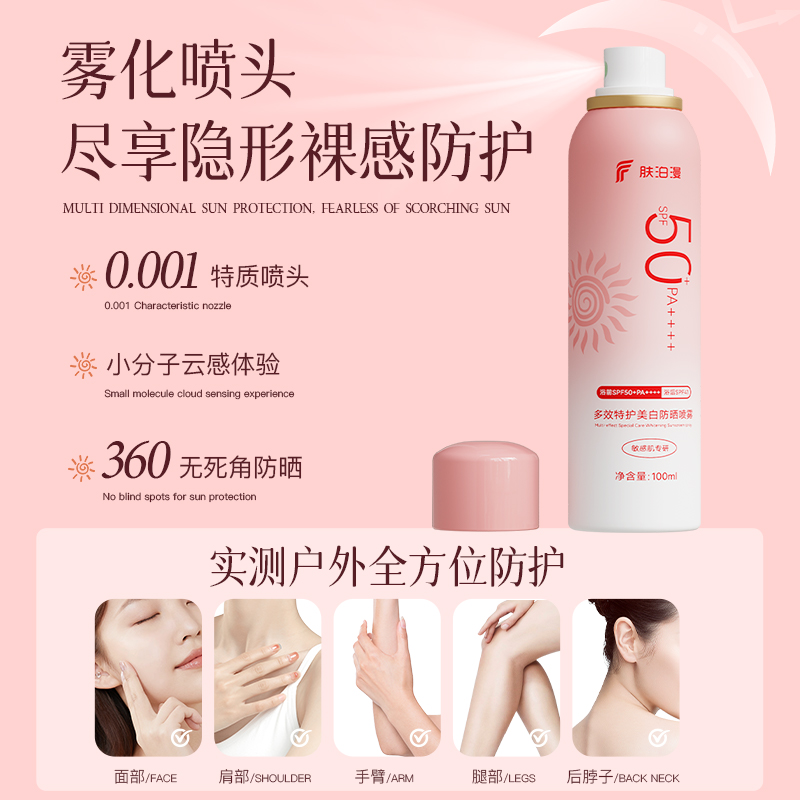 肤泊漫美白防晒喷雾户外防水防汗敏感肌男女通用官方正品