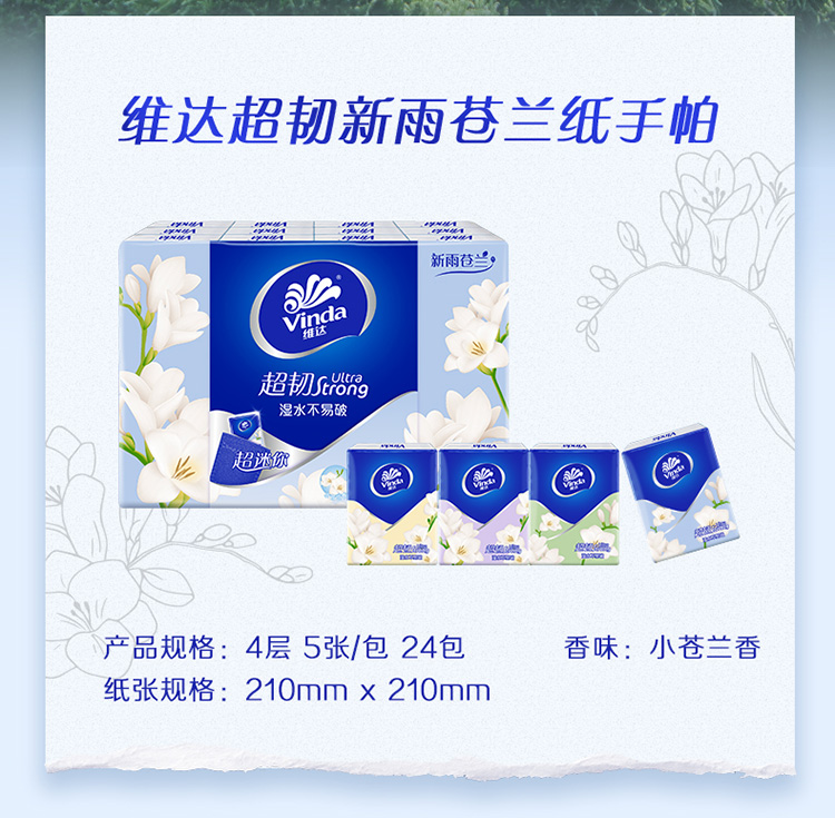 【618好物】维达超韧手帕纸 加厚4层24包装小苍兰香随身装小包TZ