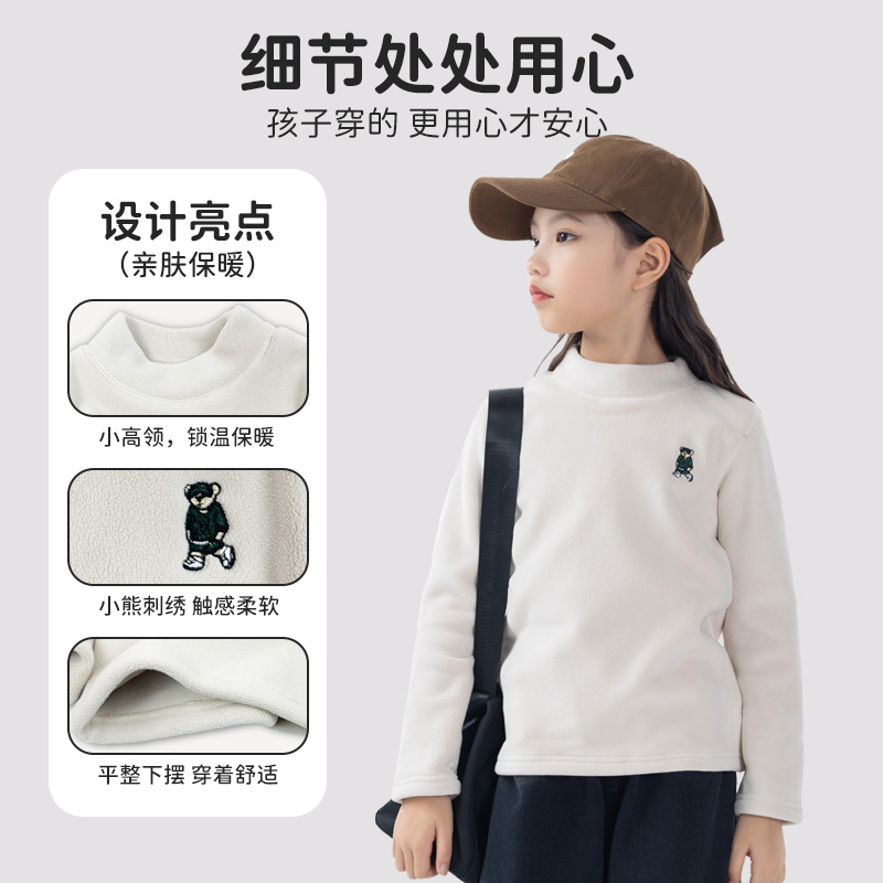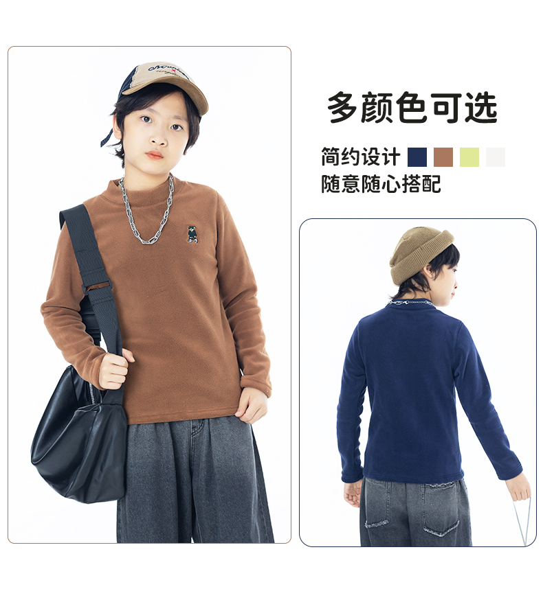 这款半高领加绒打底衣非常适合秋冬季节,保暖又舒适,价格也非常实惠,有多种颜色可选,适合不同年龄段的孩子