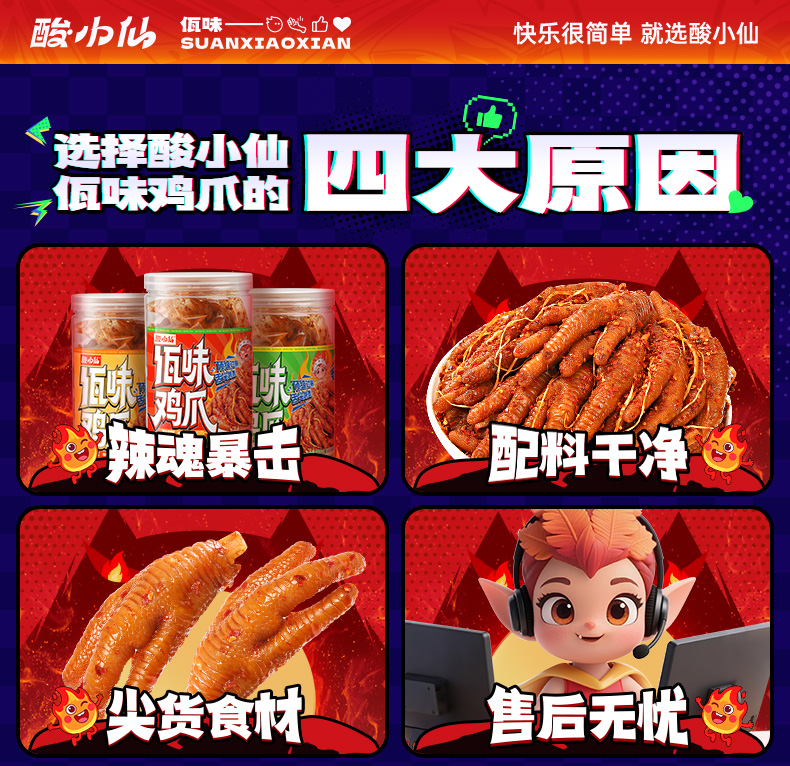 买家评论: 标题:酸小仙佤味鸡爪,地道云南风味,辣得过瘾! 正文: