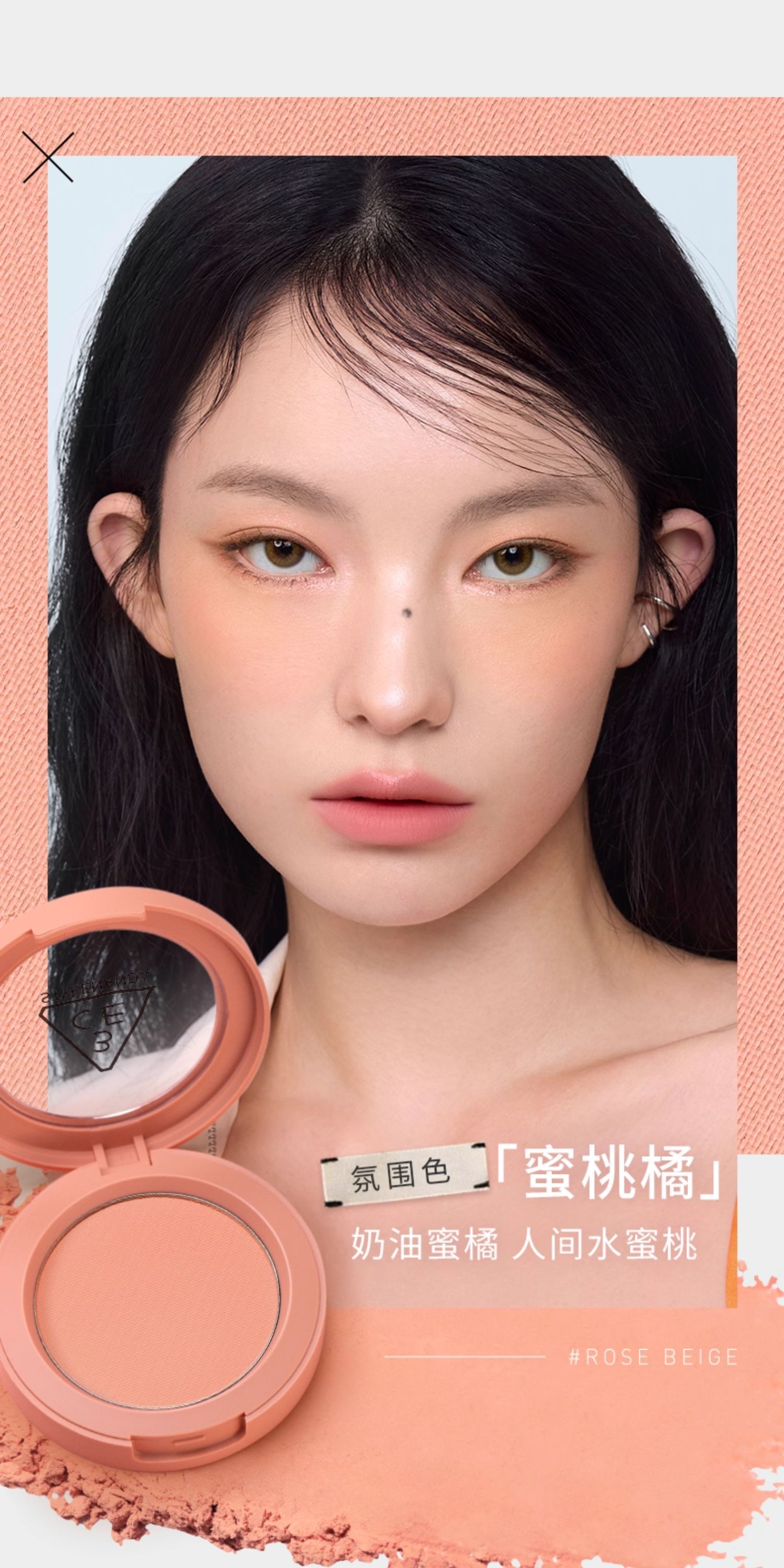 - ¥48.00 mini款-#ROSE BEIGE「蜜桃橘」3g*1件+粉扑1片*1件(氛围色)