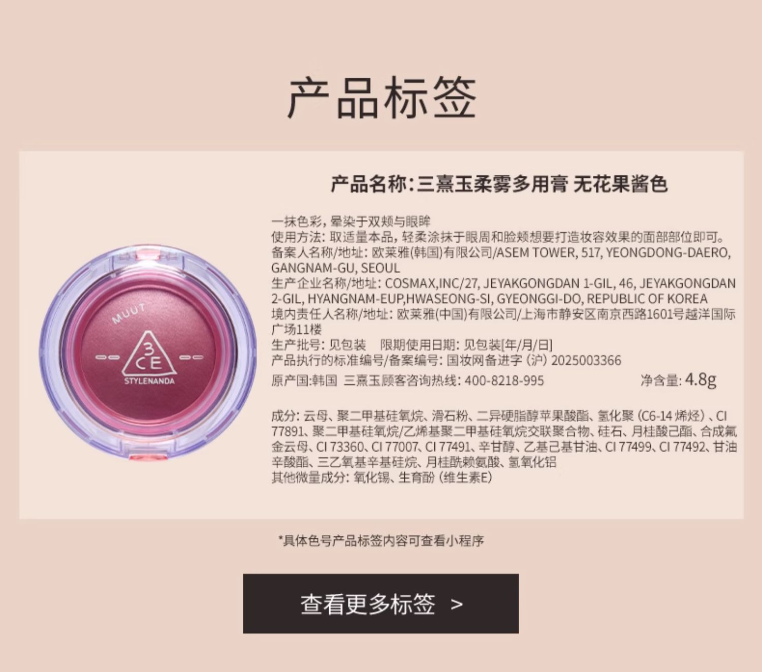 - ¥79.00 #03 BEIGE CRUSH「无尽夏」4.8g*1件+粉扑1片*1件(多用膏-(氛围色))