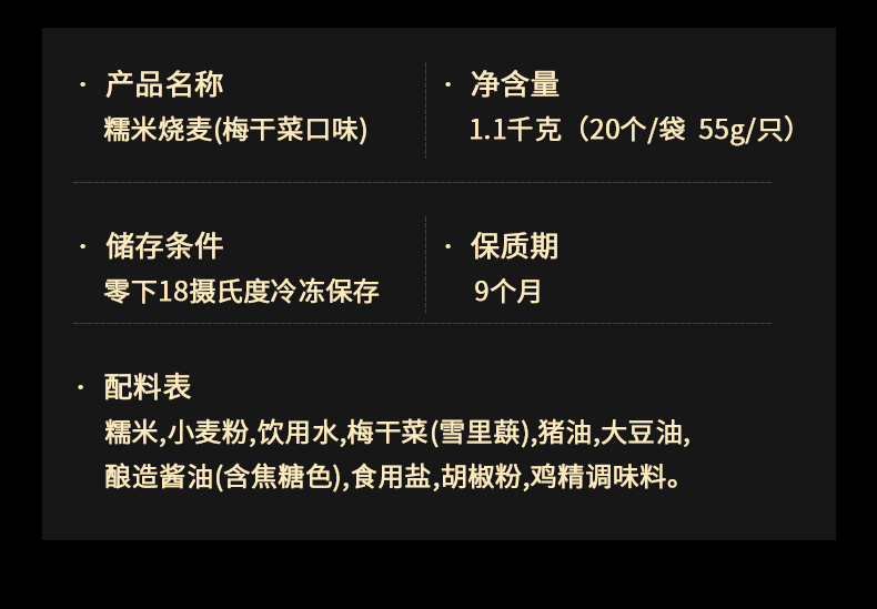 - ¥29.60【梅干菜】烧麦共1袋20个1100克