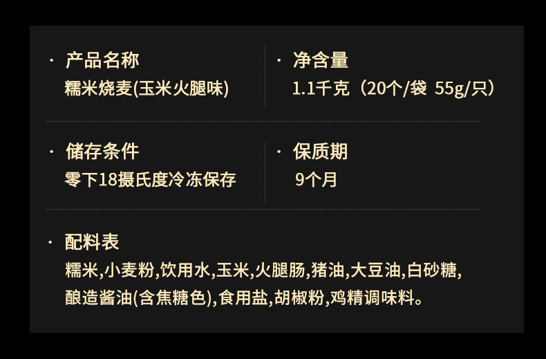 - ¥29.60【玉米火腿】烧麦共1袋20个1100克