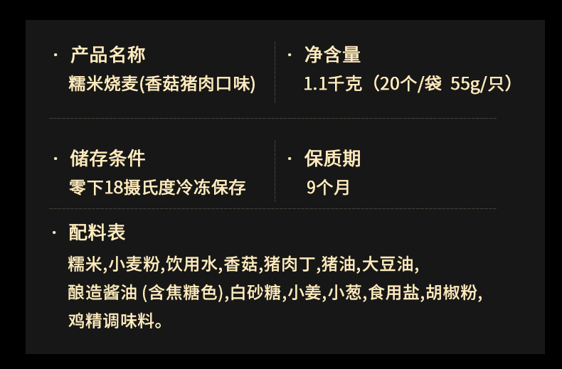 - ¥29.90【香菇猪肉】烧麦共1袋20个1100克